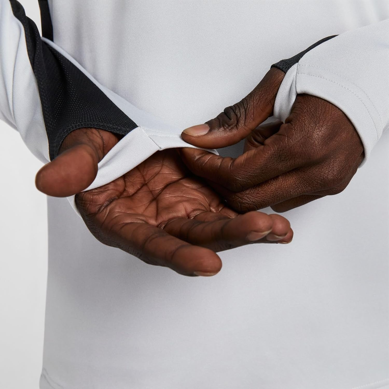 The Nike Academy Dri-Fit Punching Shirt is made of stretchy, breathable fabric to help you feel comfortable when practicing your skills. Plus, hidden thumb holes help keep the sleeves in position as they move. This product is made from 100% recycled polyester fiber.