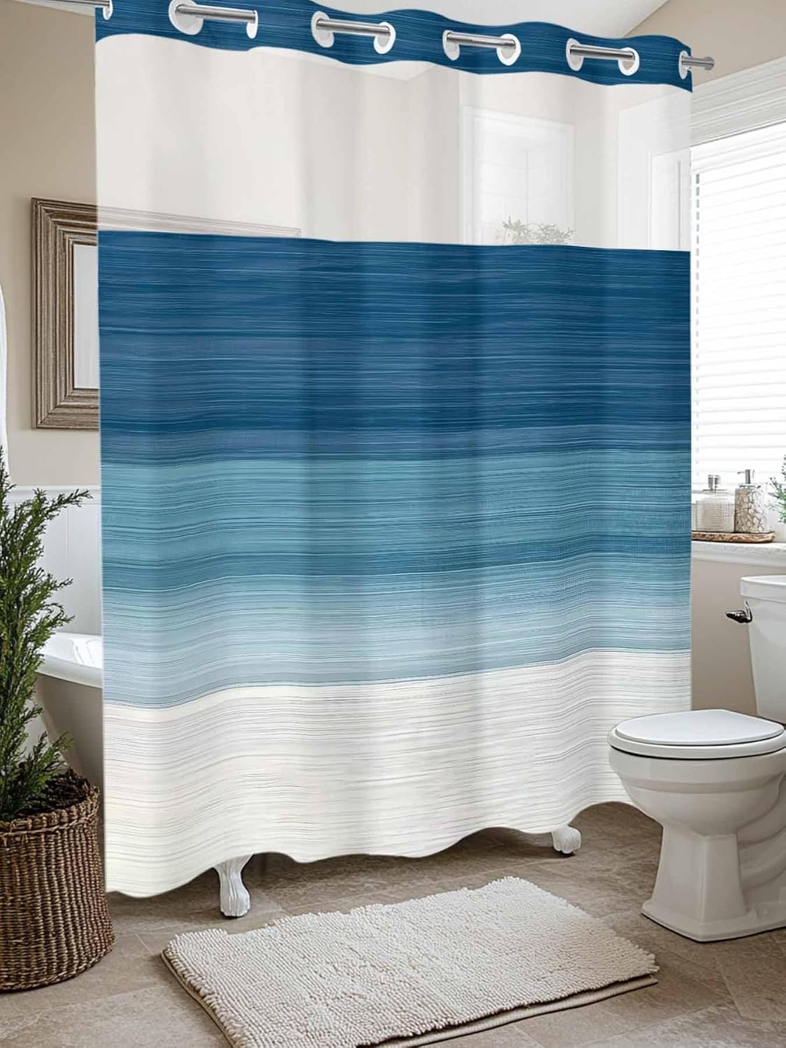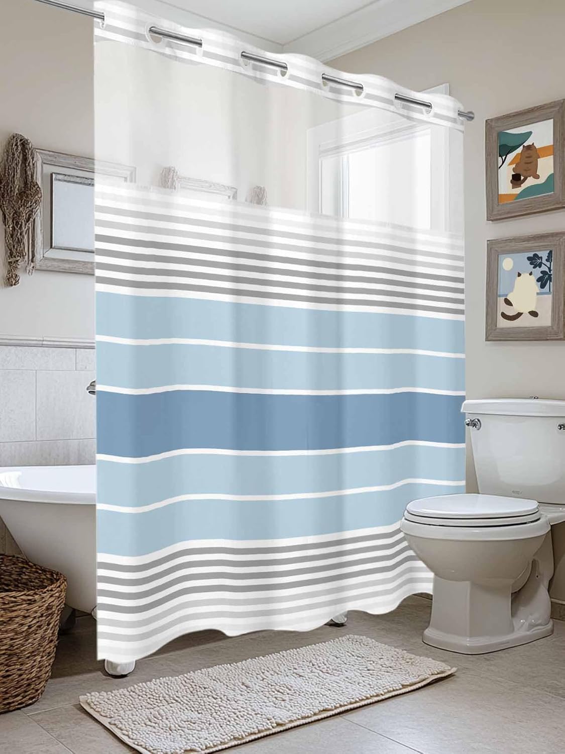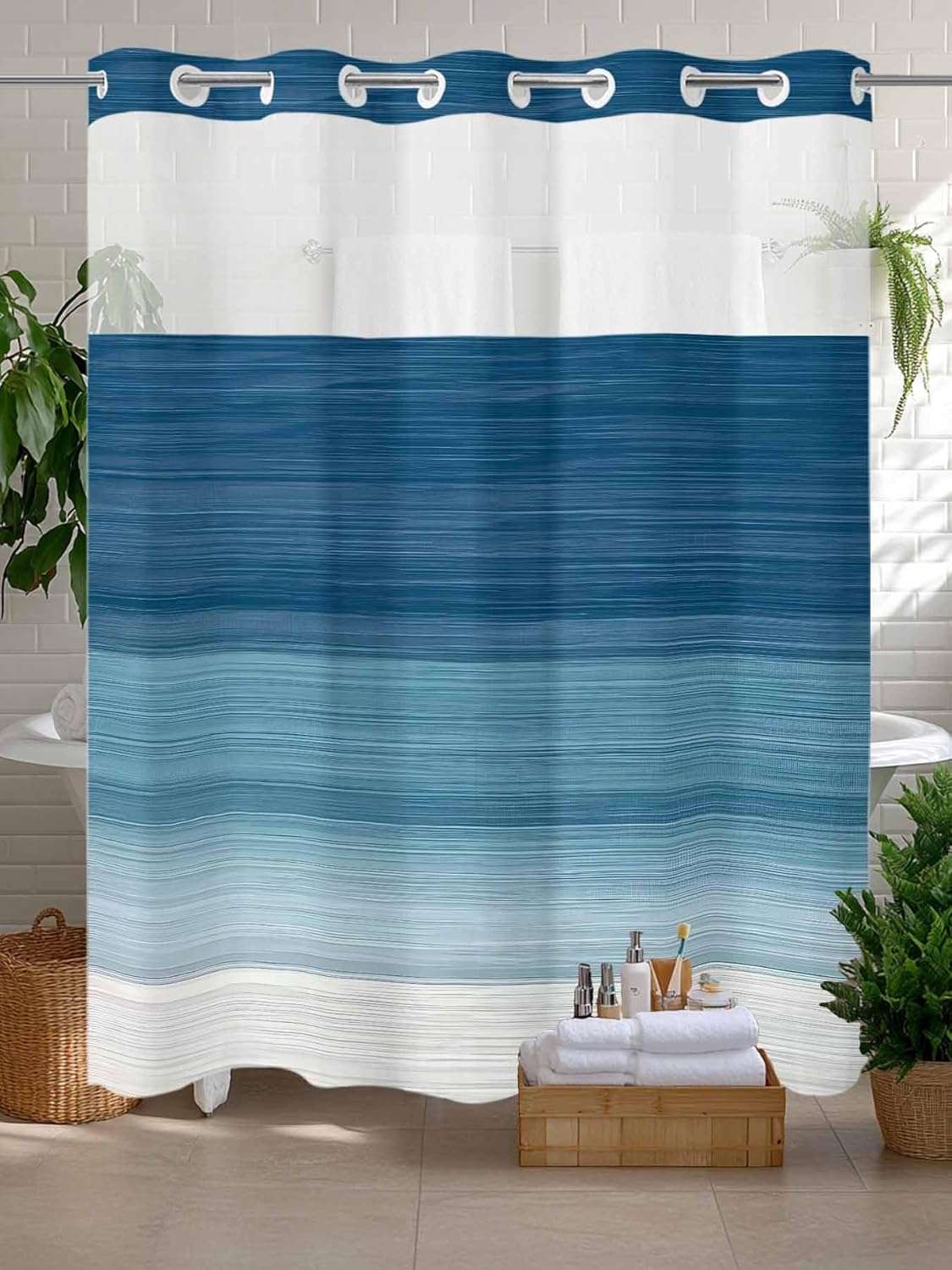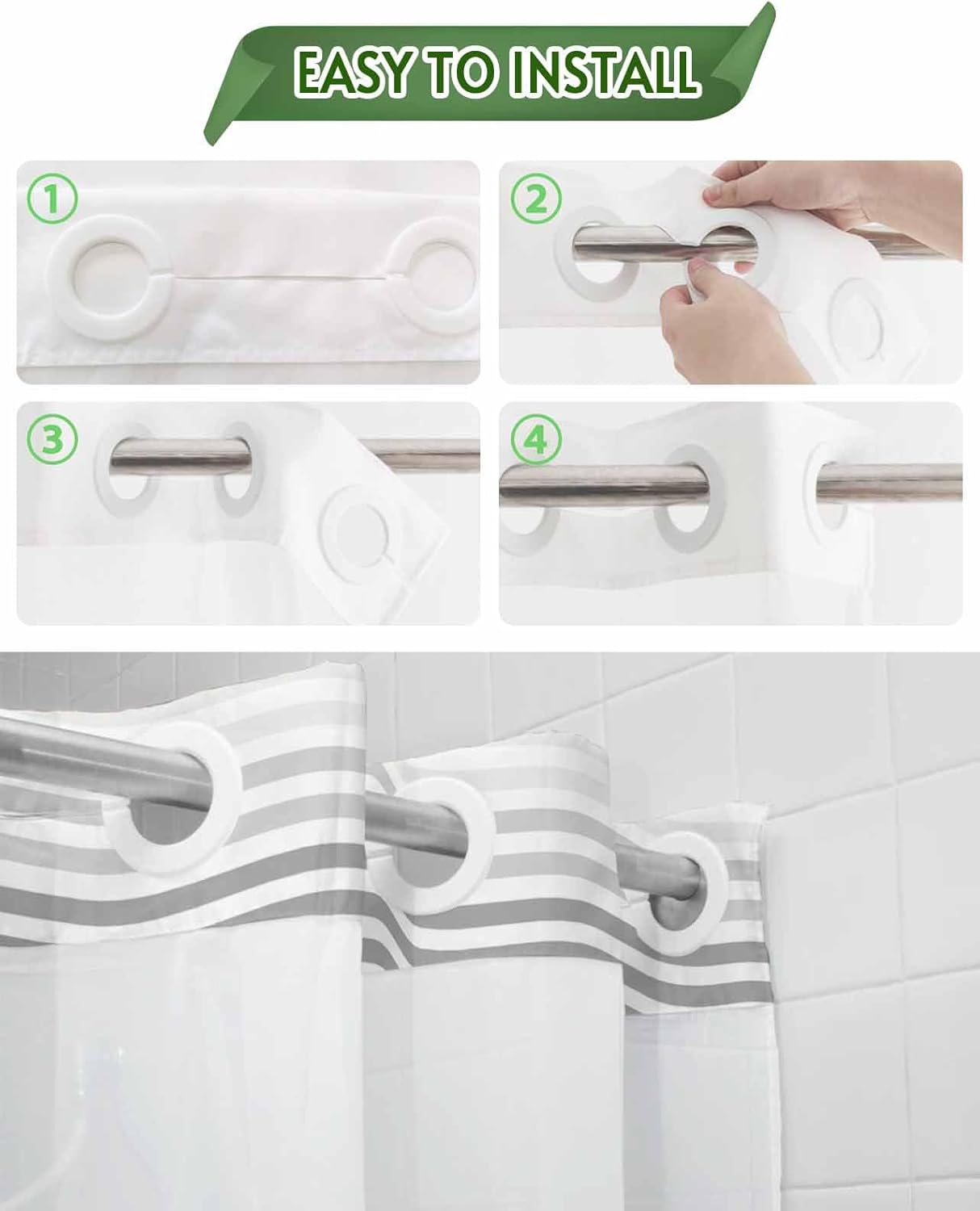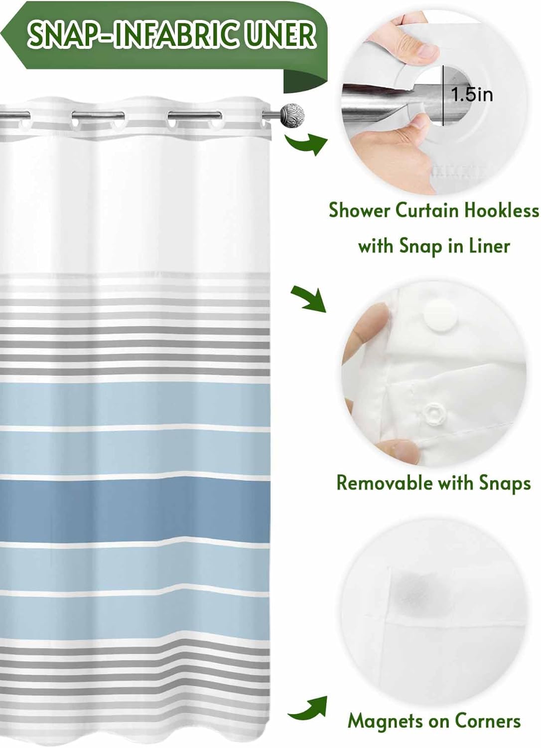 No Hook Shower Curtain with Snap in LinerWaterproof Bath Curtain Size ▸36x72 inches (about 91x183cm)▸36x78 inches (about 91x198cm)▸48x72 inches (about 122x183cm)▸54x78 inches (about 137x198cm)▸60x72 inches (about 152x183cm)▸66x72 inches (about 168x183cm) ▸72x72 inches (about 183x183cm) ▸72x78 inches (about 183x198cm) ▸72x84 inches (about 183x214cm) ▸72x96 inches (about 183x244cm) Easy to Install▸Our shower curtain is designed with an open grommet top, which can be easily installed without hooks, and can be hung and slid smoothly. The no-hook shower curtain comes with a snap liner, and the replaceable snap liner is easy to remove and clean. Mindful Workmanship▸The luxury hotel style bath curtain is made of carefully selected polyester fabric, which is soft to the touch. Both the shower curtain and liner set are waterproof, allowing water to slide off and dry quickly. Privacy & Breathable▸The semi-transparent mesh on the top of the shower curtain allows light to enter while allowing air to circulate. The double-layer bath curtain maintains privacy while being breathable, creating a spa shower experience. Fashionable Gift▸The bathroom shower curtain uses advanced high-definition printing technology and it is not easy to fall off and fade. The waterproof bath curtain is very suitable for family, friends and other holiday gifts, such as 4th of July, Independence Day, Halloween, Thanksgiving, Christmas, etc. How to Clean▸This shower curtain with snap in liner can complement any style and decoration and is not easy to get dirty. Machine washable in cold water, hang to dry. Do not bleach. It can be dried quickly after washing and is easy to care for. Quality Assurance▸If you have any questions, please feel free to let us know, we will give you a satisfactory reply within 24 hours.