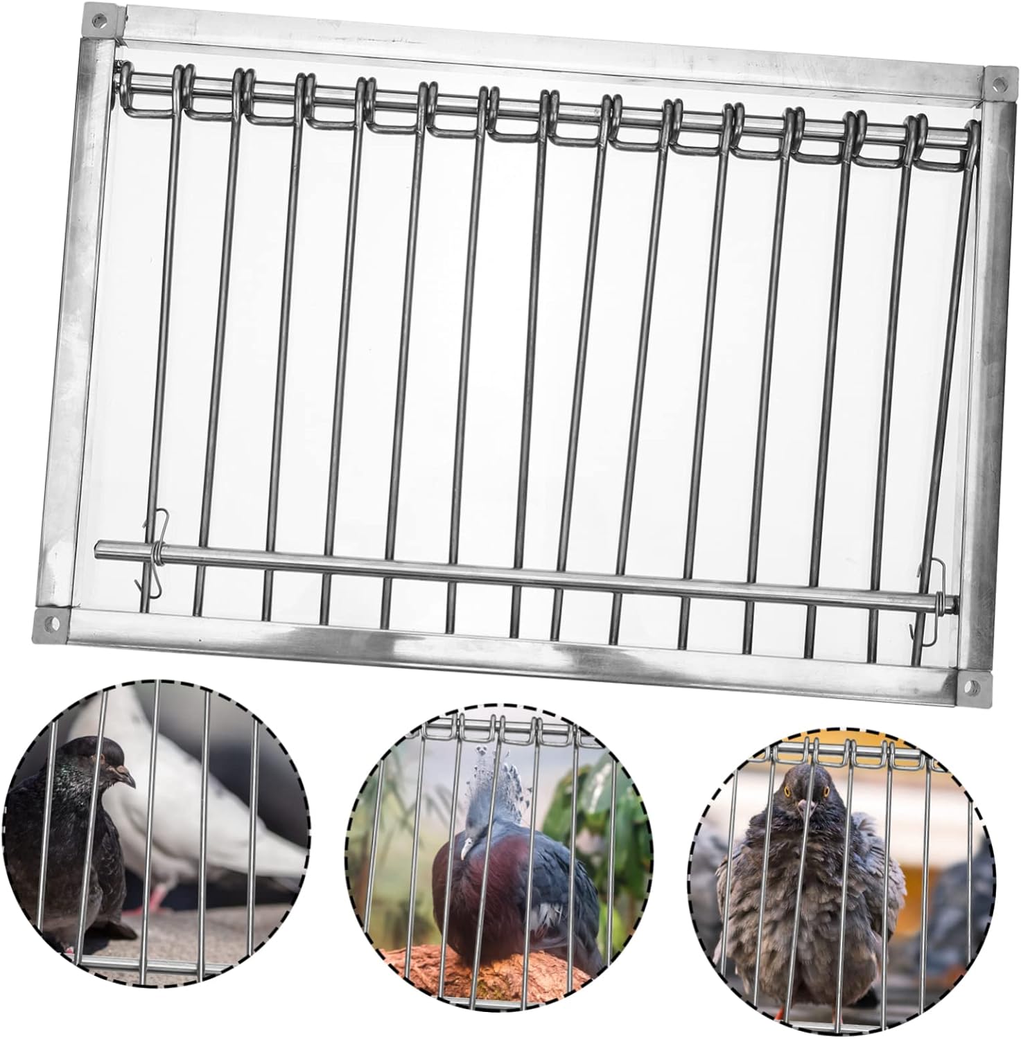 Package Include 1 x Bird Cage Door Features -Size:39.00X26.00X1.50cm/15.33X10.22X0.59in bird cage entrance -Color:Silver pigeon entrance -Material:Stainless steel pigeon loft door - Stainless steel is used as the material, which is hard and not easily damaged metal pigeon door. - It's a choice to detain the pigeons. It is easy to use and will not hurt your hands bird supply. - The appearance is simple and atmospheric, and it can be well matched with other things pigeon . - It can be used not only in the pigeon loft, but also in private use pigeon cage entrance. - Dovecote door can be conveniently installed anywhere desired so that your pigeons can easily enter your dovecote pigeon entrance door.Goods Informationracing birds catch bar Our pigeon cage door is made of high-grade stainless steel.pigeon entrance It can be used well with your pigeon loft.bird door It is hard and not easy to break.pigeon loft door The house is more beautiful.pigeon supplies It will not only allow your pigeons to accurately find the home, but also let your pigeons go home