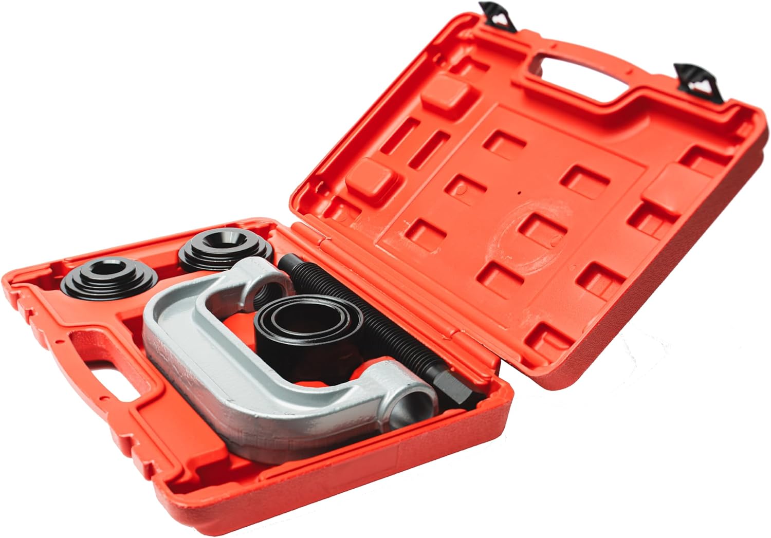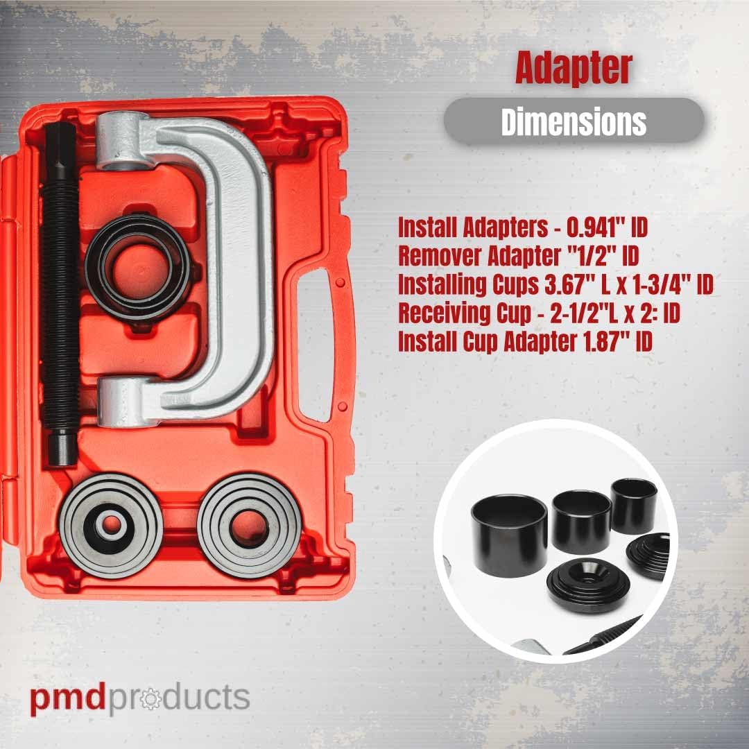 11 Piece FORGED C CLAMP Commercial Ball Joint Service Set Ball Joint Installation, Universal U-joint install/remove.Truck Anchor Brake Pins Installation/Removal Tool KitPress Shaft has ball bearing for less friction and long tool lifeC CLAMP is FORGED not cast like other kits.FORGED to withstand increased loads for the toughest applications.
