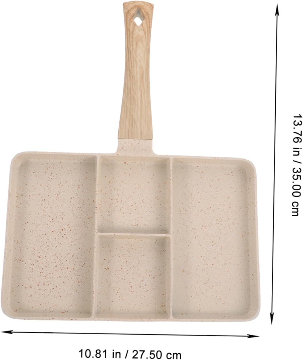 Package Include 1 x Frying Pan Features -Color:Beige ollas -Size:35.00X27.50X2.30cm/13.76X10.81X0 pan. -Material:Aluminum alloy and wood frying accessory -The egg frying pan is made of for use kitchen frying pan. -Multifunctional use, fried eggs, , egg hamburgs, etc., bringing convenience to your daily life aluminum alloy pan. -It's easy to clean, convenient to use, easy to fry eggs. A good cooker for your home egg supplies. -Anti-scalding handle, it is comfortable and non-stick to hold, keeping your safety non stick skillets. -This multiple grooves nonstick frying pan can make kinds of delicious dishes at one time! aluminum alloy frying panGoods Informationwok accessories Great for frying eggs, egg , etc.nonstick grill pan Wear- bottom design of the pan can evenly and save effort.handle steak pan Wonderful distribution that gives extra efficient performance on cooking.egg accessories With creative design, it can keep food from rolling and sliding.breakfast frying pan Nonstick coating offers easy release performance and effortless cleanup.cooking pan Our Non-stick Frying Pan is to fit your everyday cooking needs