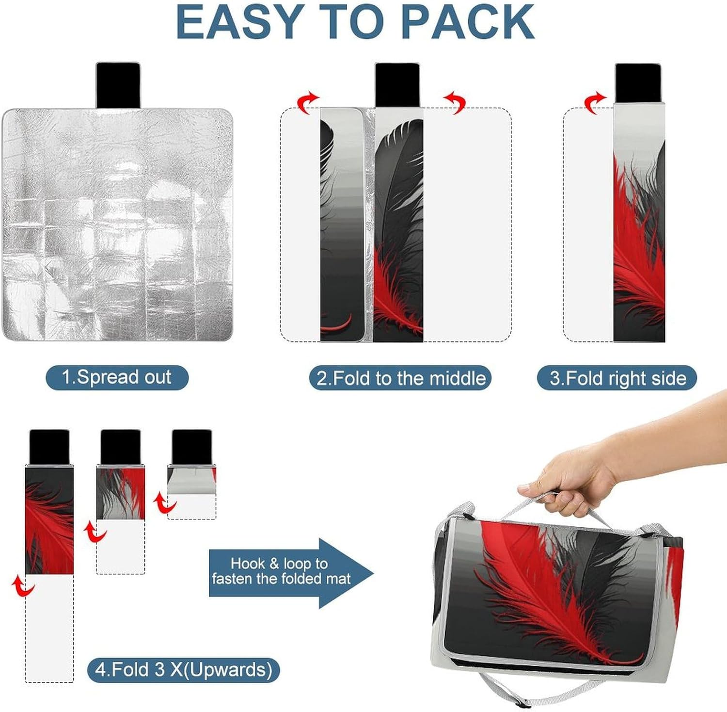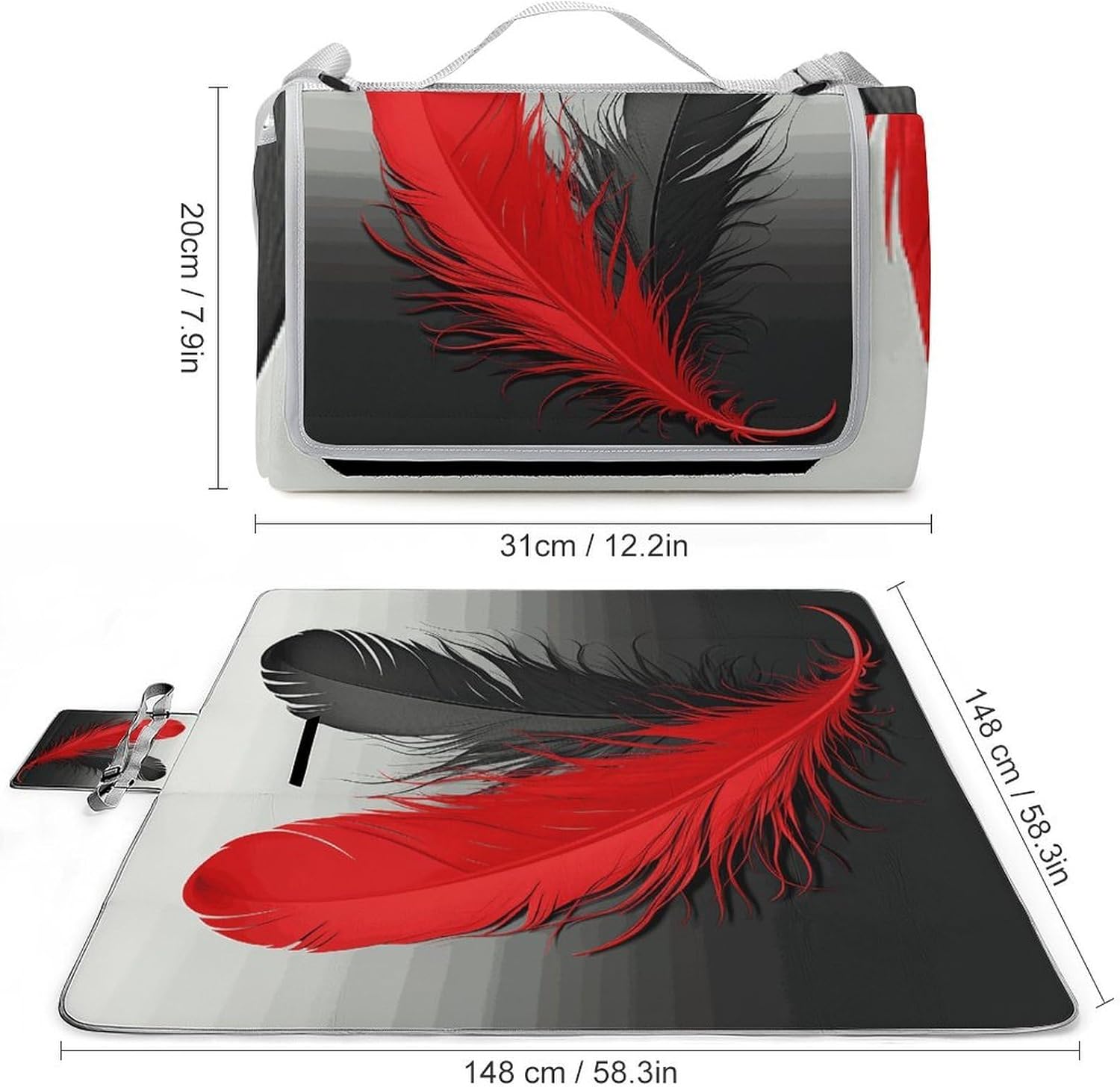Red And Black Feather Square Outdoor Picnic Blanket Product Description Elevate your outdoor adventures with our Red And Black Feather square Outdoor Picnic Blanket, a versatile essential designed for comfort and convenience. Measuring 58.3 x 58.3 inches, this spacious picnic mat offers plenty of room for family gatherings, friend outings, or solo relaxation. Crafted with fine flannel and sponge, our Red And Black Feather Picnic Blanket delivers exceptional softness and thickness—plush and cozy, just like a premium beach towel. The durable material boasts solid wear resistance, standing up to repeated use across various activities without easy damage. Red And Black Feather lightweight picnic Blanket and foldable picnic Blanket, it features a user-friendly design that folds into a compact mini size. Secured by a Velcro closure to prevent loosening, this Red And Black Feather foldable picnic mat saves precious space in backpacks, totes, or car trunks, perfect for on-the-go use. This Red And Black Feather waterproof mat has an upgraded, sturdy waterproof surface, making it a reliable outdoor blanket for any scenario. Dirt, mud, wet grass, or beach sand can be easily shaken off or wiped clean, keeping it fresh for your next trip. It excels as a beach mat, camping mat, or waterproof mat for damp ground. Designed for maximum versatility, it suits picnics, camping, hiking, beach days, sports events, backyard play, outdoor concerts, and hunting. It also doubles as a soft play mat for kids, fitting outdoor spots like parks and travel, plus indoor family dinners. This Red And Black Feather picnic mat meets your needs across all four seasons. Blending comfort, portability, and functionality, our Red And Black Feather Outdoor Picnic Blanket is the perfect choice for outdoor lovers. Whether for a weekend picnic or extended camping trip, it enhances every moment with thoughtful design and reliable quality.