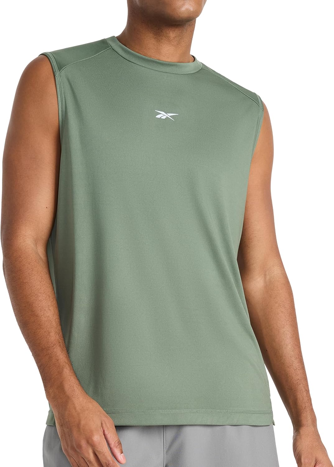 Own your training in the Reebok Men’s ID Train Sleeveless Tech Crewneck Tank Top. Built from lightweight polyester with moisture-wicking tech, it keeps you dry through every grind. The sleeveless cut frees your range of motion, while the Vector HT logo delivers a hit of athletic heritage. Designed for performance with a street-ready edge.