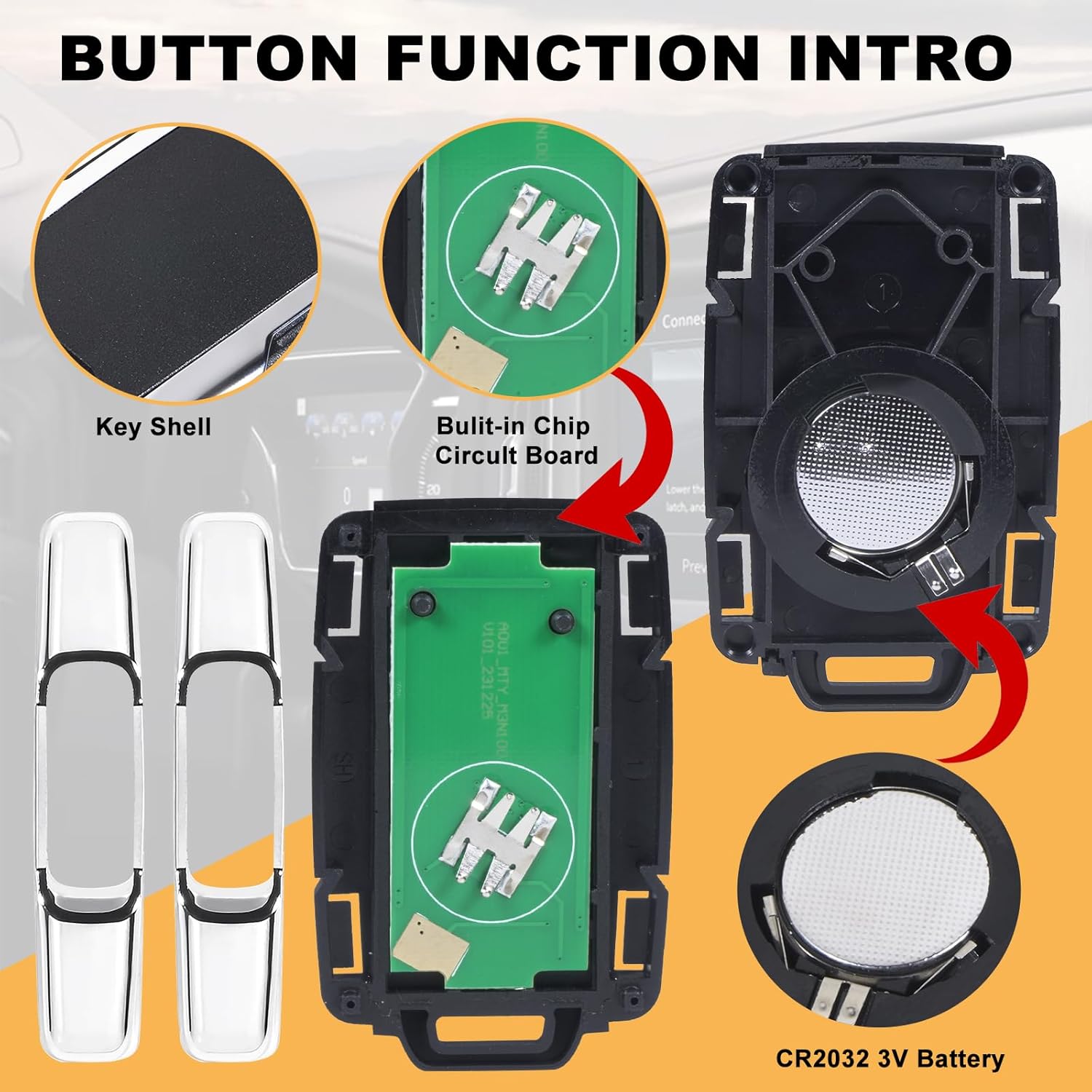 Upgrade your vehicle’s key fob with this Remote Key Fob Replacement Kit, designed for Chevrolet and GMC vehicles. This kit allows you to easily replace and program your key fob without the need for expensive dealership services, saving both time and money. Whether you’re looking to replace a lost or damaged key fob, this solution ensures seamless functionality with your car’s existing systems.Compatibility: This key fob replacement is compatible with the following models:2014-2018 GMC Sierra / Chevrolet Silverado2015-2021 Chevrolet Colorado / GMC CanyonBefore purchasing, please ensure that your original key blade and button layout match this key fob for proper fitment.Key Features: Simple Setup: The included OBD key plugs directly into your vehicle’s OBD2 port to easily pair your new key fob in under 10 minutes. No need for a costly trip to the dealership!4-Button Remote: This key fob features 4 buttons for remote start, lock, unlock, and alarm functions. It will only retain the original features that were available when your vehicle was manufactured, ensuring it works just like your original fob.FCC ID & Part Number Compatibility: This remote key fob is compatible with FCC ID: M3N32337100 and Part Number: 13580082, making it an ideal replacement for specific GMC and Chevrolet models.What’s Included: 1 x Remote Key Fob (with Chrome Frame)1 x Simple OBD Key (for programming through OBD2 port)Important Note: Please double-check that your vehicle’s key blade and button layout match this key fob before purchase. This product does not add new functions to your vehicle; it only supports the original features as provided by the manufacturer.