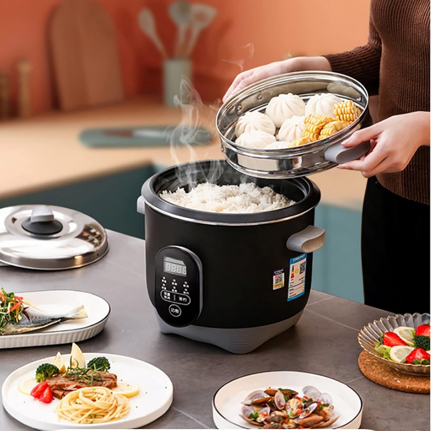 Name: Rice CookerHeating method: chassis heatingLiner material: non-stick linercapacity:1.5L: suitable for (1 people)2L: suitable (1-2 people)3L: suitable (2-4 people)4L: Suitable (3-6 people)5L: suitable (4-8 people)Function: rice, sushi rice, porridge, cake, egg, stew, etc.Note: 1.The number engraved in the liner is not the size of the pot, it is the ratio of water to rice, please understand.2. Please don't worry about the voltage problem, we will give a local conversion plug according to your address.
