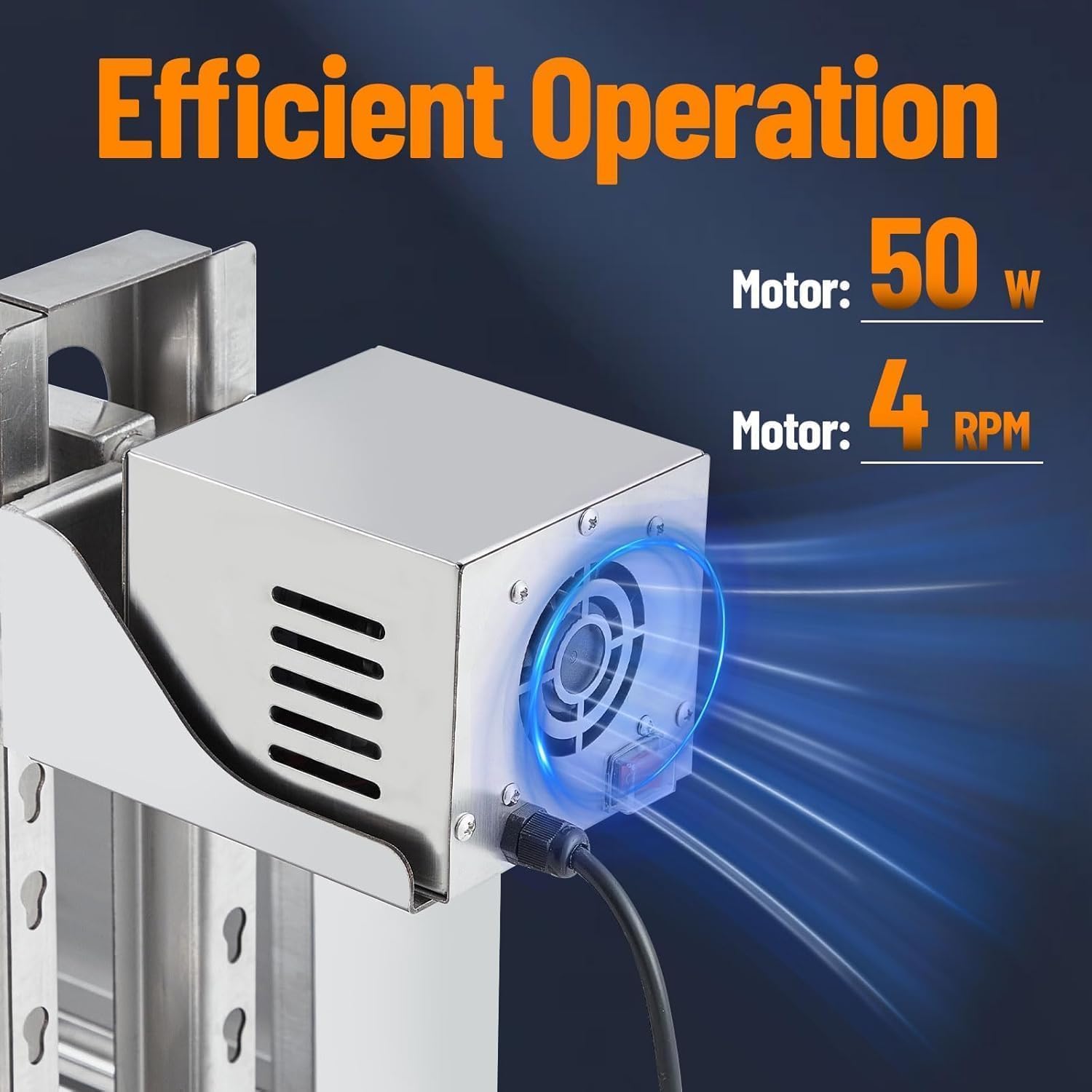 The Stainless Steel Electric Rotating Grill With Furnace has greater strength, is easy to assemble and clean, and can be used in many scenarios as well as for a wide variety of foods. Perfect for roasting lamb, goat, pig, chicken, turkey, or whole roasts at parties, picnics, or camping trips, enjoying flavor anywhere and with anyone!