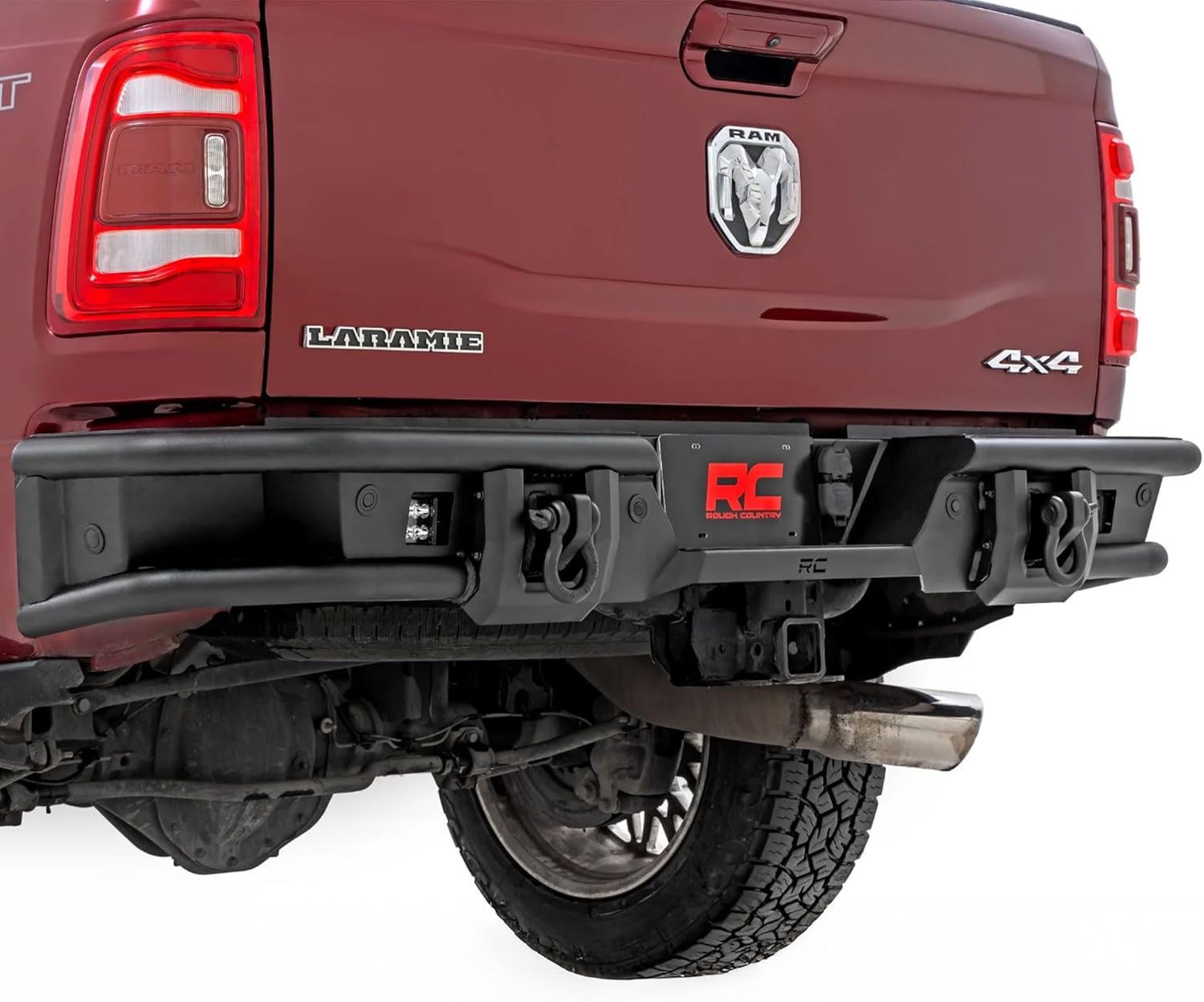 Rugged Rear-End Upgrade: Transform the rear of your Ram 2500/3500 with Rough Country's Tubular Rear LED Bumper. This aggressive, high-clearance design not only elevates your truck's off-road appearance but also improves departure angles for trail-ready performance. Whether you're crawling rocky terrain or cruising city streets, this bumper delivers head-turning style and rock-solid protection.Engineered for Strength and Function: Crafted from heavy-duty steel and finished in a corrosion-resistant, textured black powder coat, this bumper is built to handle whatever the road or trail throws your way. Its bold tubular design complements your Ram's body lines while providing dependable impact resistance and long-lasting durability.Fully Compatible and Sensor-Ready: This rear bumper is designed to retain your factory receiver hitch for full towing functionality and accommodates factory backup and proximity sensors. For Ram models not equipped with sensors, mesh block-off plates are included to maintain a clean, finished look.Light-Ready Design: Need extra visibility? This bumper includes provisions to mount Rough Country's 2-inch LED light cubes, giving you the ability to add powerful rear-facing illumination for trail spotting, worksite visibility, or night-time reversing.Hassle-Free Installation: No cutting, welding, or drilling required. This bumper features a 100% bolt-on installation using standard tools and can be completed in just 3-4 hours from the comfort of your garage.Backed by a Limited Lifetime Warranty: Rough Country backs this rear bumper with a limited lifetime replacement warranty against structural and workmanship defects, giving you confidence on every adventure. Note: Due to variances in rear tailgate design this bumper does NOT fit Power Wagon or Rebel models as the tailgate will contact the bumper. Does NOT fit models with rear bumper-mounted camera. 2" Black Series LEDs are sold separately and are for off-road use ONLY.