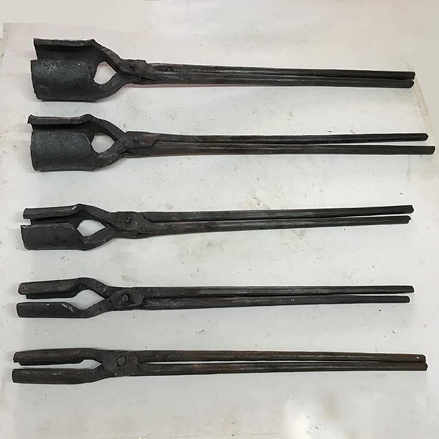 These Round Nosed Blacksmith Tongs are designed for maximum strength, durability, and precision in any metalworking or knife making task. Forged from steel, they can withstand extreme temperatures, making them an essential tool for blacksmiths, bladesmiths, and farriers. The 50mm round mouth diameter provides a secure grip on a variety of stock sizes, allowing you to handle hot metal without scratching or damaging your workpiece. Unlike traditional pliers or vise grips, these tongs offer large, smooth jaw surfaces that ensure better control. With no slippage or wobbling, these tongs lock your blade or stock firmly in place, even during heavy hammer buffets. Whether you're just starting out or are an experienced professional, these tongs are lightweight, easy to use, and versatile enough for all your blacksmithing needs.