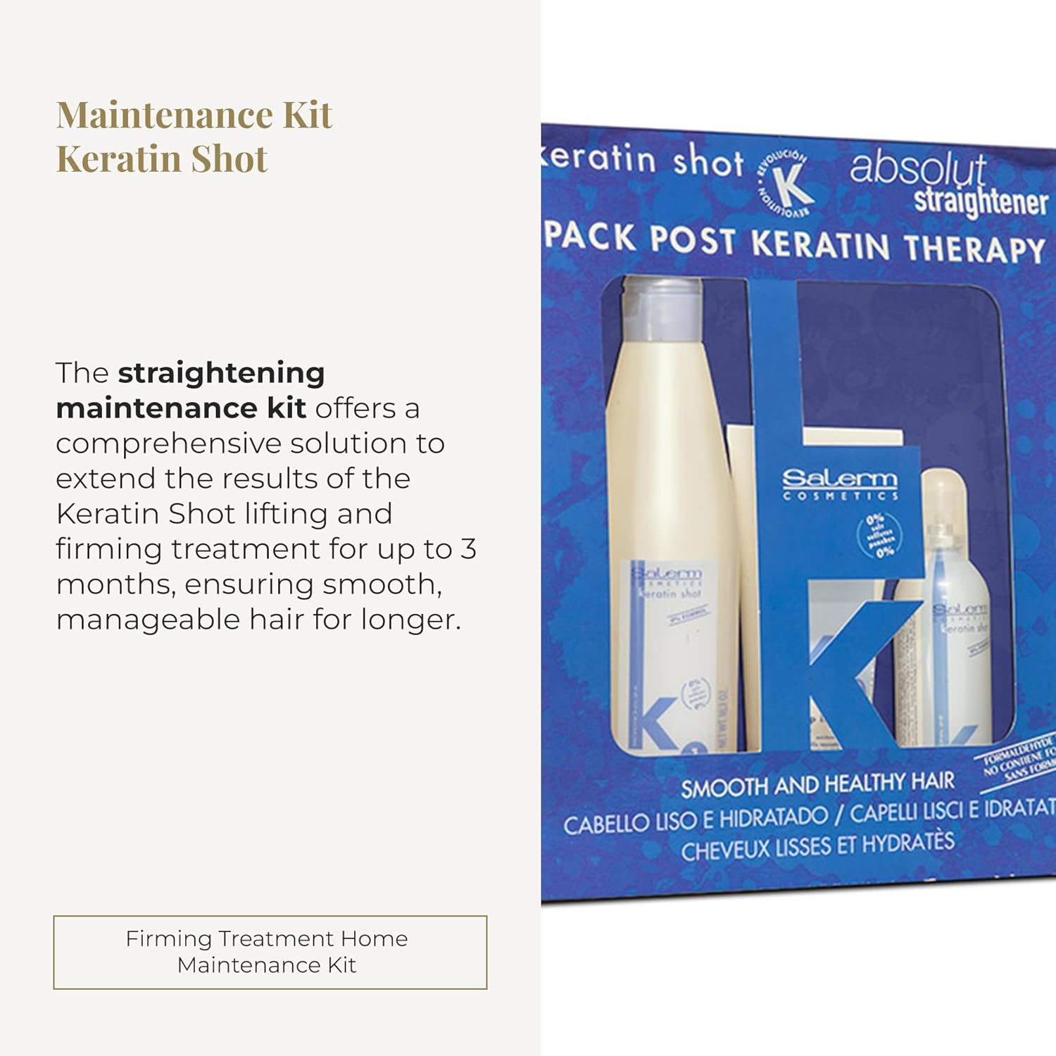 Post Keratin Shot rehydrating straightening treatment kit. Keratin Shot is the perfect treatment based on natural keratin which maintains your hair straight and healthy longer. Aids the hair straightening process. Drastically reduces volume. Rehydrates.