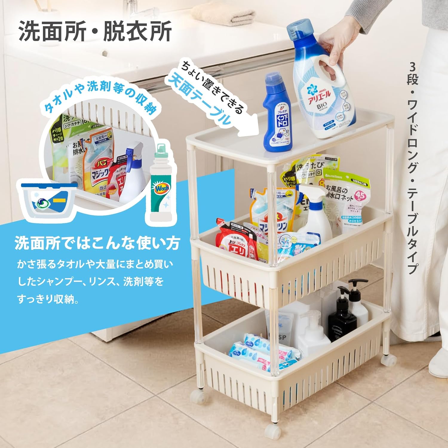 ■ A convenient wagon to organize your kitchen. ■ Comes with a convenient table for temporarily storing things or standing work. ■ Deep basket for convenient organization of tall items. ■ Mesh basket is breathable so it can be used to stock vegetables. ■ The basket is large enough to hold A4, so it can be used to organize documents. ■ Comes with casters for easy movement. - Made in Japan for peace of mind.