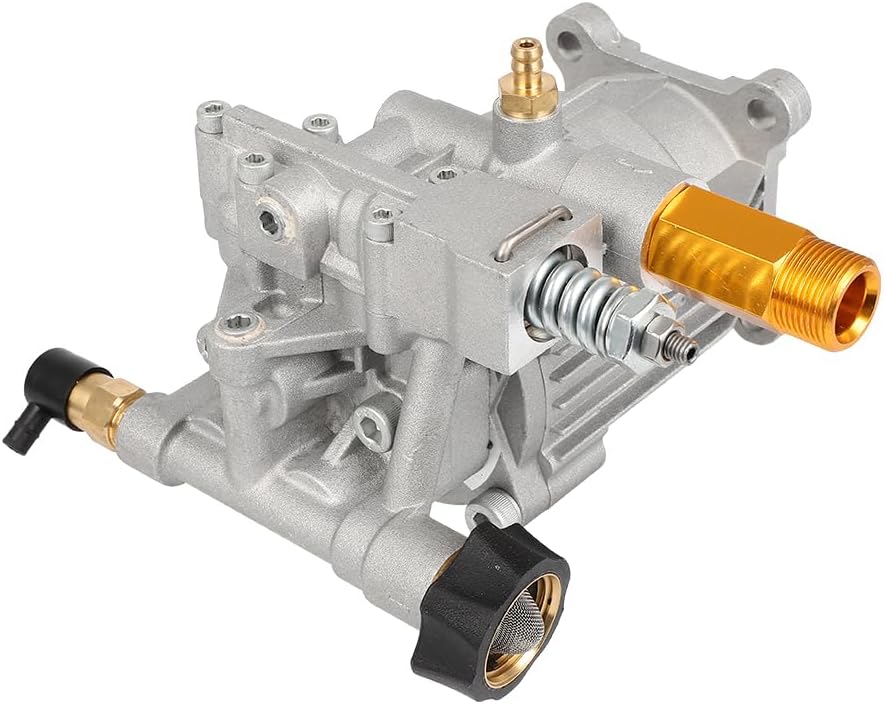 SCITOO Pressure Washer Pump High Pressure Washer Pump: 3/4" Shaft Max Pressure: 3000 PSIPremium Quality Pump Kit Our pressure washer pump kit is built to deliver exceptional performance and durability, featuring a robust design with a forged brass head, anodized aluminum body, and die-cast crankcase with large cooling fins. Equipped with German-made packing seals and a stainless steel pop-off valve thermal relief valve, it provides a reliable and efficient operation. The hardened, precision-ground crankshaft and solid stainless steel, ceramic-coated plunger ensure maximum durability and long lifespan. Powerful and Versatile With its high-pressure capabilities and adjustable flow rate, our pump can tackle a wide range of applications, from residential pressure washing projects like cleaning driveways, sidewalks, and siding to commercial-grade cleaning jobs like commercial equipment, paint preparation.