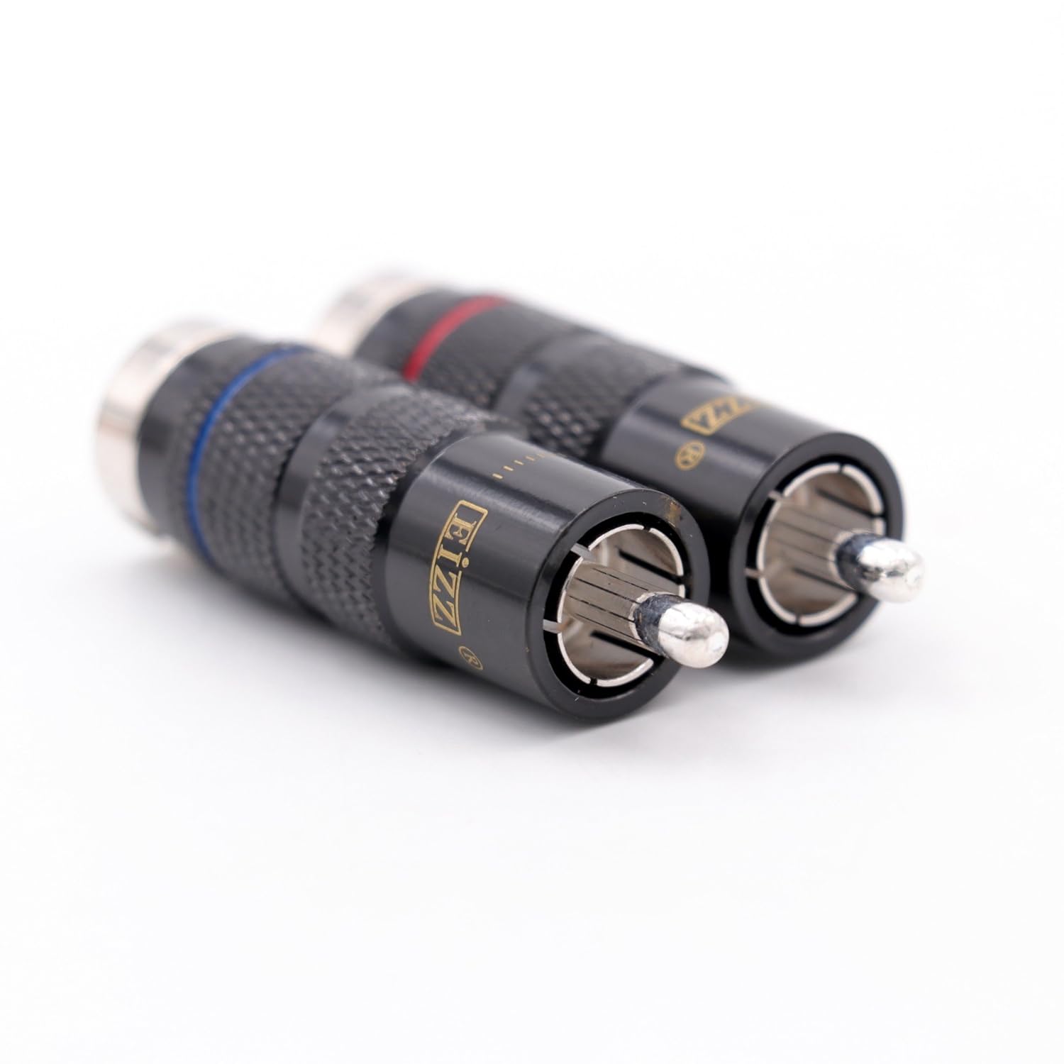 Brand New EIZZ Male RCA Plug ConnectorMaterial: Rhodium plated phosphor bronze body, Tellurium copper Pin, Teflon InsulatorAluminum alloy Housing, Black Chrome Plated Max. cable diameter accept: 8mm (AWG1/0)Length: 46mmDiameter: 14mmPlug diameter: 3.2mmFix by set screw, solder freePackage includes: Male RCA Plugsx4PCS
