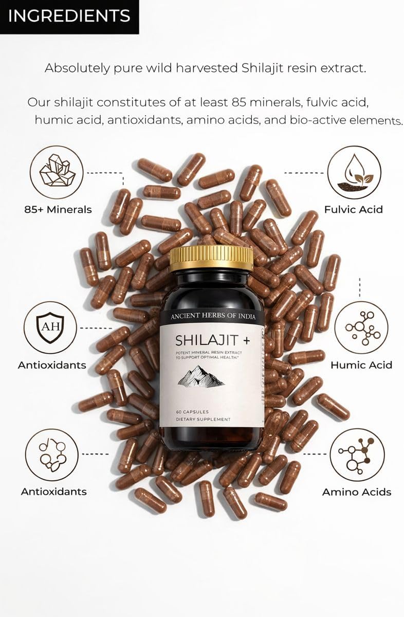 Ancient Herbs of India Shilajit+ Capsules are crafted using time-honored Ayurvedic principles and modern quality standards. Our Shilajit is carefully sourced from high-altitude regions of the Indian Himalayas, where nature creates this powerful mineral resin over centuries. Shilajit is known for its ability to support energy production, stamina, strength, focus, and overall wellness. Naturally rich in fulvic acid and trace minerals, it helps the body absorb nutrients more efficiently and supports long-term vitality. We believe in clean, honest supplementation. That’s why our Shilajit+ capsules are made without fillers, artificial ingredients, or GMOs. Each batch is carefully processed to maintain purity and effectiveness while ensuring safety. Whether you’re looking to support daily energy, physical performance, or holistic wellness, Ancient Herbs of India Shilajit+ is a reliable choice inspired by nature and backed by tradition.