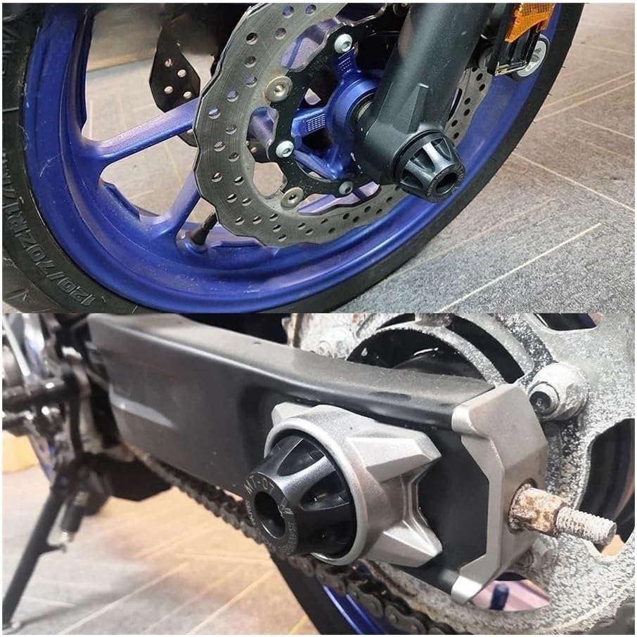 Safety: Designed to prevent motorcycles from collisions and scratches when or driving at speeds. Even if dropped on the ground, the frame slider can well protect the motorcycle parts and shell, and minimize damage, saving repair costs.Front Rear Axle Wheel Sliders Crash For Yam&aha MT07 FZ07 XSR700 MT FZ 07 FZ-07 XSR 700 2014-2024 Swingarm Stand Guard-Material: Nylon+Aluminum-Production process: Steel die casting-Position: Front or Rear-Color: Black-Quantity: 1 pcs / 1 pair-The protection pads are easily fixed at either end fork through appropriate passing steel bar.-Designed to help eliminate damage to the front axle during a drop,a skidding stop or a low side. For Yam&aha MT-07 2014-2024For Yam&aha FZ-07 2014-2020For Yam&aha XSR700 2018-2023Material Type : Nylon+AluminumItem Weight : 0.26gItem Height : 2.9cmItem Width : 4.7cmItem Length : 4.7cmName : For Yam&aha FZ-07 MT-07 XSR700 2014-2024Item Type : Falling ProtectionItem : Motorcycle Front Rear Axle Fork Crash SlidersColor : BlackInstallation location : Front & RearFit 1 : For Yam&aha MT-07 2014-2024Fit 2 : For Yam&aha FZ-07 2014-2020Fit 3 : For Yam&aha XSR700 2018-2023Type : MT-07 FZ-07 Falling ProtectionFeature 1 : Spindle Hub ProtectionFeature 2 : Crash Sliders GuardFeature 3 : Rear Swingarm Stand SliderAnti-collision: Protect your motorcycle from collisions and scratches when driving at speed, the frame pads protect motorcycle parts and shell, even if they fall to the ground, it can minimize the damage.