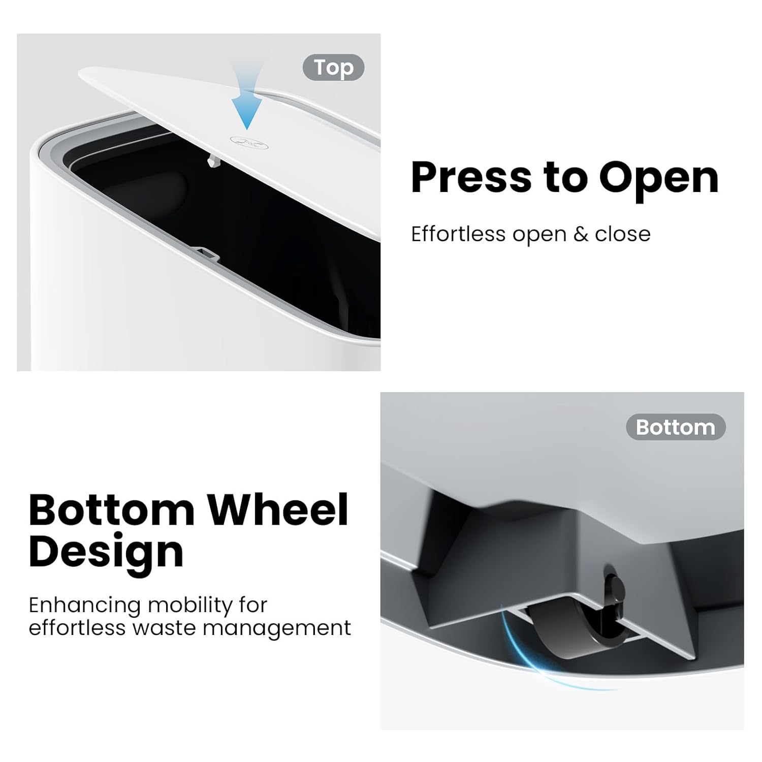 | Included Components | Trash can boby, Inner bucket with wheels |