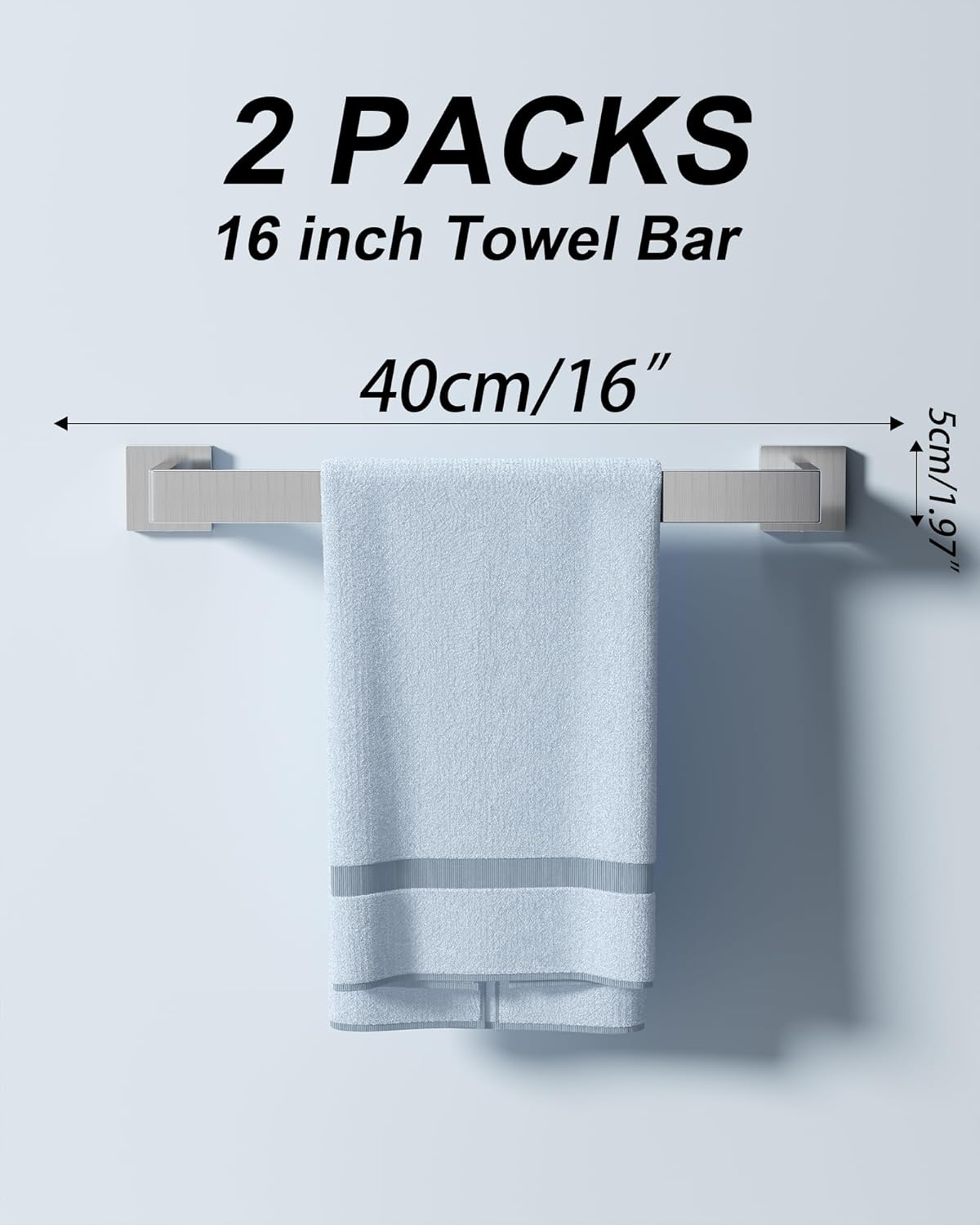 • [Complete Bathroom Organization Kit] Includes: 2×16" towel bars , 2×towel rings, 2×one-handed TP holders, 4× towel hooks (prevents slippage) - perfect for family bathrooms or guest suites