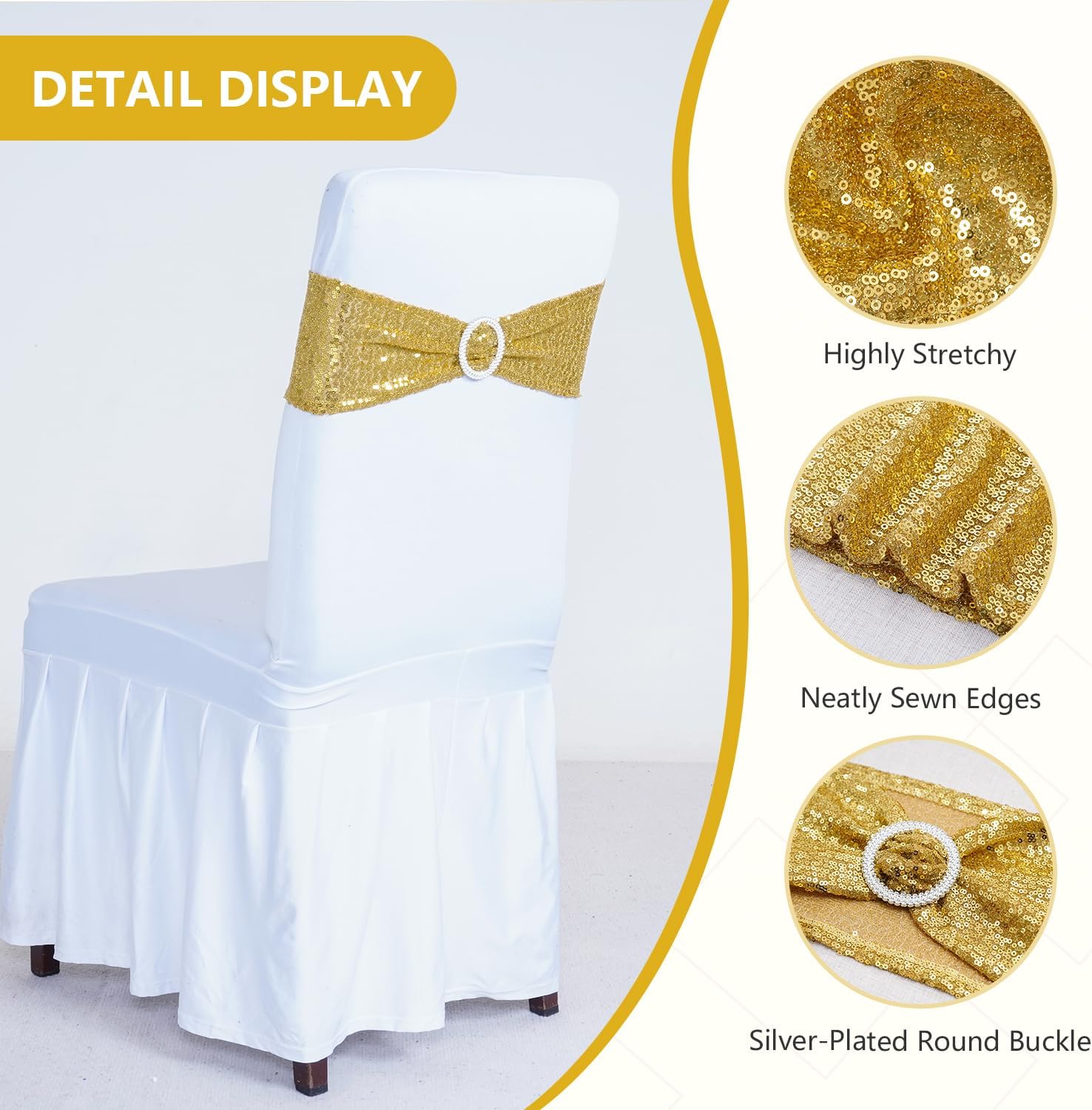 Enchanting Elegance Awaits: Transform Your Event with Our Sparkling Sequin Chair Sashes! Are you tired of ordinary chair decor that fails to leave a deep impression on your event guests? Do you want a luxurious yet easy-to-use solution to turn plain chairs into eye-catching highlights that complement your event theme? our Sequin Chair Sashes with Slider Buckle—carefully crafted to blend premium quality, hassle-free operation, and versatile scene adaptation. Whether you’re a professional wedding planner designing a romantic bridal reception, an event organizer coordinating a high-end corporate banquet, a party host preparing a lively birthday celebration, or a parent arranging a memorable baby shower, these sequin chair sashes can meet your decor needs and elevate your event’s glamour. Our sequin chair sashes are the secret to creating a cohesive, luxurious atmosphere that makes every guest feel valued and turns your celebration into an unforgettable experience. Feature: Where Luxury Meets Function Upgraded 3mm Elastic Sequin Fabric & Elegant Silver-Plated Slider Buckle Expert Craftsmanship with Refined Edging Effortless Setup, Instant Transformation: Decorate 100 Chairs in Minutes! Set the Scene: Create an Unforgettable, Immersive Atmosphere Key Search Keywords: sequin chair sash, slider buckle chair decor, wedding chair sashes, banquet chair decorations, reusable chair sashes, sparkly chair sashes, elastic chair sashes, event chair decor, party chair sashes, premium sequin sashes, bridal shower chair decor, graduation chair sashes, corporate event chair decorations. Don’t settle for ordinary chair decor that fades into the background. Elevate your next event with our Sequin Chair Sashes with Slider Buckle—where premium quality, effortless use, and dazzling sparkle come together. Add them to your cart today, and let every chair shine brightly, turning your celebration into an unforgettable moment for you and all your guests.