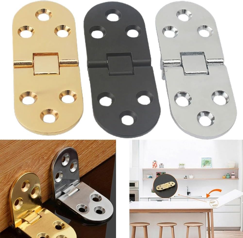 Product description Features:* Made of material,. zinc alloy, more .2. Suitable for folding tables, cabinets, doors, .3. Embedded installation is simple and safe.Specification:* Material: zinc alloy* Color: Gold, Black, Silver* Thickness: 2mm* Dimensions: 78*29mm (approx.)* Quantity: 1PCSPackage content:* List : x Flip Hinge, 6 x Screws Manufacturer Contact Information no