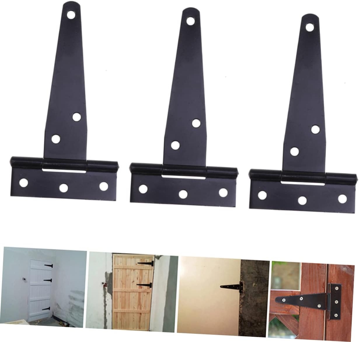 Package List x Hinges Features - Material: Iron T shape hinges. - Color: Black gate Hinge. - Size: About 10x6.5x0.5cm/3.94x2.56x0.197inch. - 6 Positioned screw holes for stabler fixation use heavy duty hinges. - Easy to install and fast . Fit for gate/door open and close use 4 inches door hinges. - Made of iron material, with galvanized process, it have more longer service life than your imagination Furniture Hinges. - Widely used in hotels, clubs, upscale clubs, wooden doors, background wall, counter doors, lightweight worktop or table and many DIY projects. - Rugged, , resistant, flexible and silent.Goods InformationT shape hinges Made of iron material for durable and practical use.4 inches door hinges It have more longer service life than your imagination.gate Hinge With 6 positioned screw holes for stabler fixation, easy to install, durable in use.Furniture Hinges It can be used in the cabinet door, room door or barn door