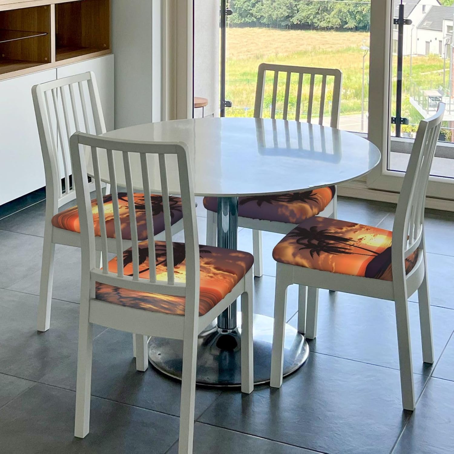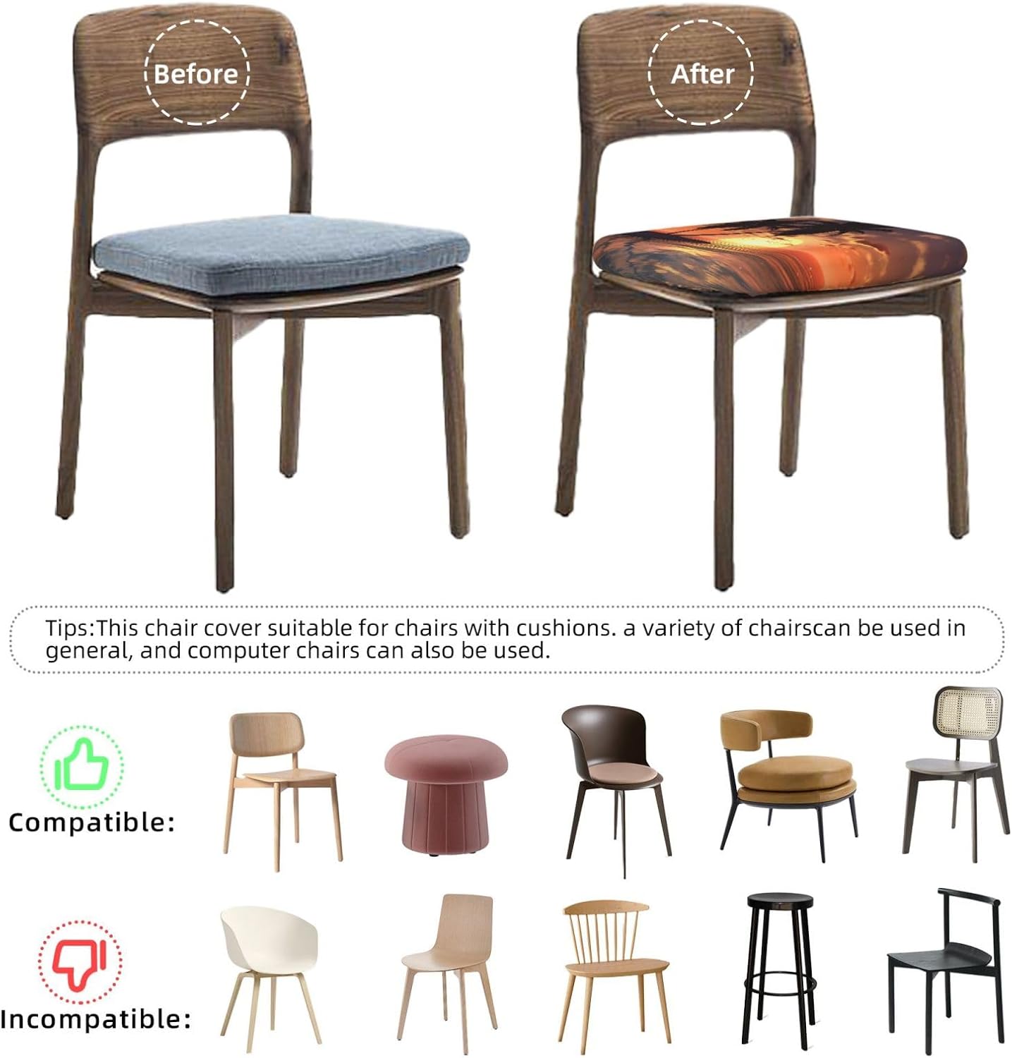 2 piece pack /4 piece pack /6 piece packLength, width: 16.9 in (43cm)Fits the size of a table mat: 2.8 in (7 cm)Suitable for thickness: 1-2.4 in (2.5-6 cm)Soft and comfortablePrinted chair covers are simple and fashionable, and won't make your furniture look the same.It can also be given as a gift to friends or family.Removable chair cover is only applicable if the cushion is separated from the chair,please check whether your seat cushion can be removed before purchasing.Decorate your chair and give your home a new look.Can be used for weddings, offices, celebrations, families, restaurants, dining room, kitchen, bedroom, indoor or outdoor decoration