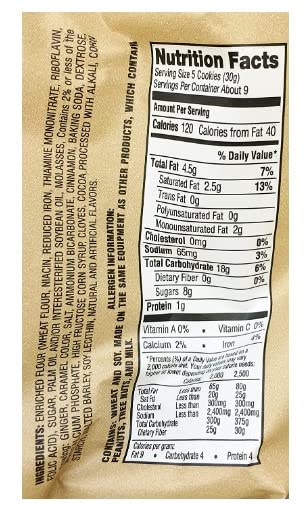 TDST 4 bags Old Fashioned Ginger Snaps Cookies 10 oz Bulk Snaps Snacks EBT Eligible With Real Molasses. 'ENRICHED FLOUR (WHEAT FLOUR, NIACIN, REDUCED IRON, THIAMINE MONONITRATE, RIBOFLAVIN, FOLIC ACID), SUGAR, PALM OIL AND/OR INTERESTERIFIED SOYBEAN OIL, MOLASSES, CONTAINS 2% OR LESS OF THE FOLLOWING: GINGER, CARAMEL COLOR, SALT, AMMONIUM BICARBONATE, CINNAMON, BAKING SODA, DEXTROSE, MONOCALCIUM PHOSPHATE, HIGH FRUCTOSE CORN SYRUP, CLOVES, COCOA PROCESSED WITH ALKALI, CORN STARCH, MALTED BARLEY, SOY LECITHIN, NATURAL AND ARTIFICIAL FLAVORS.'