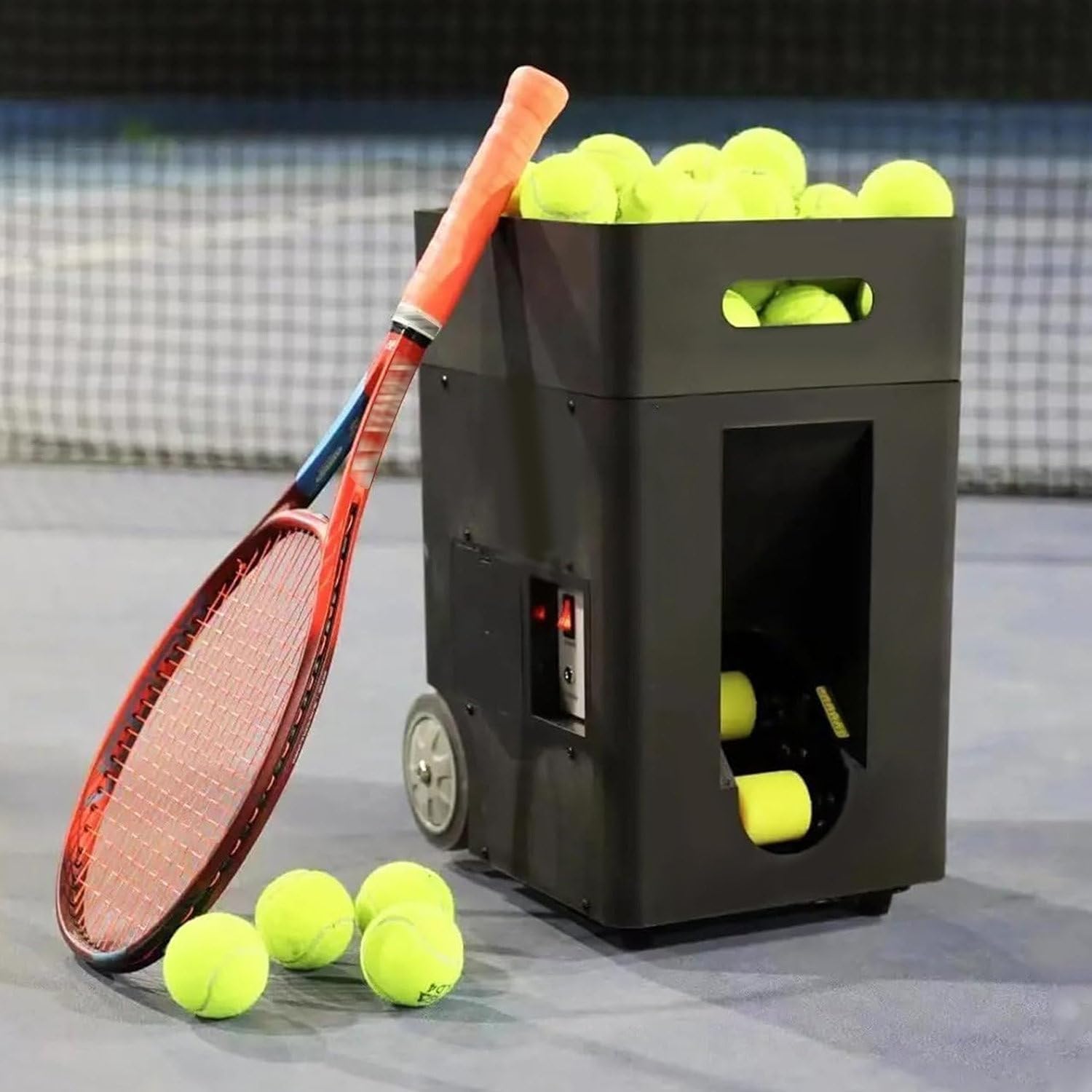 This is a model suitable for beginners and advanced players, simulating more than 90% of the ball path.Longest serve distance is 12m, the max height of the high-pressure ball is about 6m, and the shortest distance of the hand-thrown ball is 1.5m.Lifting frequency of the topspin and backspin swings varies continuously, ranging from 10-50 km/hour, depending on the softness and hardness of the ball.FEATURES● Whole machine weighs only 10kg and is equipped with a traction wheel and a traction rod;● Battery compartment is convenient for taking and putting li-batteries. It can also be installed inside the machine;● Basic action modeling training, advanced exercises for beginners.SPECIFICATIONSName: Tennis Automatic Serving MachineFrequency: 1.5-10 S/BallAngle Adjustment: 20-70°Speed: 10-60km/HControl Mode: Remote Control + APP ControlBall Capacity: 50 Balls (Not Included)Charging Voltage: 110VBattery: DC24V 5AhTime of Use: 2-4 HoursRemote Control Distance: 10-12MProduct Size: 50×36×30cmWeight: 10kgPACKING LIST1 × Tennis Serving Machine1 × Remote Control1 × English ManualCUSTOMER SERVICEIf you have any questions about the product, please send us an email in time and we will answer your questions as soon as possible.