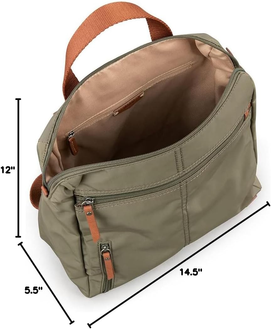 Fashionable and functional, The Sak Esperato Backpack has a main zipper closure and the interior features three zipper pockets. The exterior also features three zipper pockets. Adjustable straps make this backpack stylish and comfortable. This handbag is sustainably made with Eco-Twill, which is durable, water repellent, stain resistant, and made from recycled materials including plastic bottles.