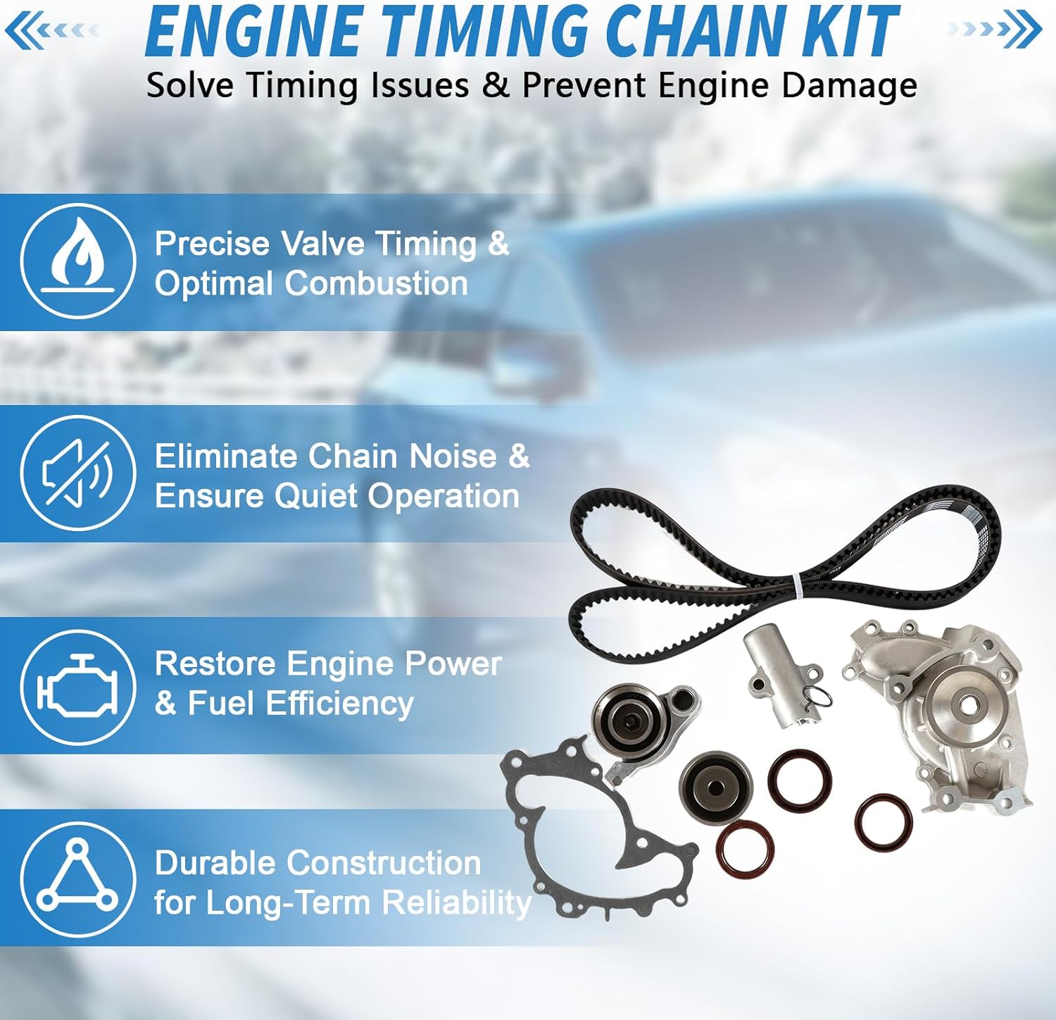 Product Name: Engine Timing Chain Kit Parts Numbers: TBK257A, WPTO033, 470-5817, 13540-20030, 13568-09080, 13503-0A010, 13505-0A010, TS26257A, ITM257A, 16100-29085, WPT-057, 13503-62030, 13505-20030, 16100-29085, WP170-1920✅ Engineered for Excellence■ High-Strength Material: Precision-crafted from durable alloy steel for lasting performance under demanding conditions.■ Direct OE Replacement: 100% compatible with factory specifications—seamless fit, zero modifications needed.■ Optimized Design: Reinforced structure ensures stable timing operation and enhanced long-term reliability.■ Smooth & Quiet: Reduces engine vibration and noise for a noticeably quieter, more comfortable drive.Fitment:For 2001-2006 Toyota Camry 3.0LFor 2004-2006 Lexus ES330 3.3LFor 2004-2006 Lexus RX330 3.3LFor 2005-2007 Toyota Highlander 3.3LFor 2004-2006 Toyota Sienna 3.3LFor 2005-2008 Toyota Solara 3.3LPackage Includes:1 x Engine Timing Chain Kit (As Picture Shown)📋 Important Notes Before Purchase & Installation1. Verify Compatibility: Always confirm the model number, part number, and product images match your vehicle’s specifications before ordering.2. Professional Installation Recommended: If you’re not experienced with timing component installation, we strongly suggest having a qualified mechanic perform the work.3. Handle with Care: During installation and testing, follow proper procedures to avoid part damage or improper timing alignment.✅ A correct fit + proper installation = optimal performance and safety.
