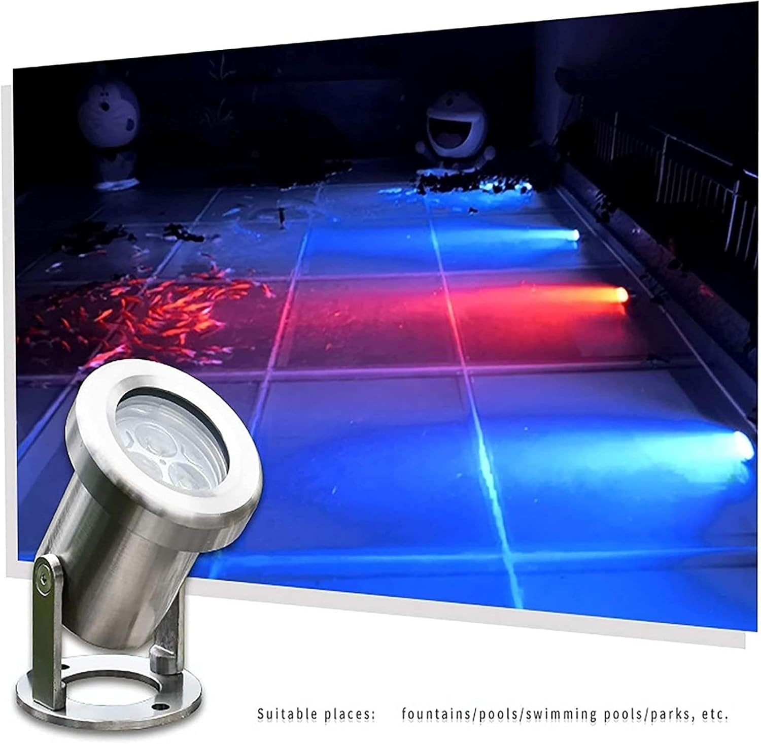 .【Product Description:Product Name: LED fountain light/illumination light/landscape light/spotlightSize: 75*100mmPower: 3wVoltage: 12V/24V/ 304 stainless steel + tempered glassBeam angle: 15-90° optional (default 30°) rating: lP68Applicable places: Widely used in swimming pools, aquariums, square fountains, artificial lakes, ecological lakes, river water levels, water curtains and other underwater lighting renderings.【Note: The product parameters are manually measured manually, there may be slight errors, but it will not affect the use.If you buy 12V/24V, you need to use it with a transformer.The RGB version changes colors automatically and cannot be controlled remotely.【Package Contents:1 X underwater LED LightWe are a professional manufacturer, if you need a professional transformer, please search ASIN: B0B9H6P3LQ/B0B9H3VRF2 to buy.