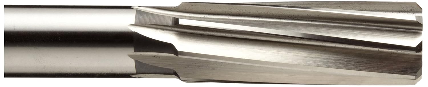 Reamers are rotary cutting tools used to enlarge an existing hole to an exact size and provide a smooth finish to the walls of the hole. Reaming may be done by hand or with a variety of machine tools. Note: When using a reamer, never rotate it in the reverse direction of the cut. This will ruin its accuracy. Machine/chucking reamers are most often just called chucking reamers. They have round shanks and are used in drill presses, turret lathes, screw machines, and other machine tools. The cutting end of the reamer is ground with a 45 Degree chamfer angle for easy hole entry. High-Speed Steel Reamers are used on a wide variety of materials including tool steel, cast iron, and aluminum.