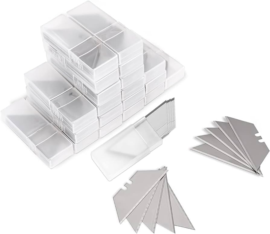 ✔Made from Heavy Duty Premium SK5 steel, which is industrial high carbon steel, compare with general carbon steel, SK5 steel has higher hardness and wear-resistance for maximum durability. ✔Each utility knife blade was engineered with a precision-honed edge which has flat, neat and sharp edge, so the utility knife blade features faster cutting speed and extended cutting life without breakage. ✔Single edge knife blades are standard size for most standard utility knives, trapezoid shape, 2.4” length, 1.25” width, 0.75” height, 0.6mm thickness, 10pcs knife blades are individually wrapped by a plastic case, total 20 plastic cases including 200pcs knife blades. ✔Industrial design-The cutter blade’s cutting angle is 50 degree, making the force more uniform and not easy to break, ideal for cutting cardboard, rubber, leather, linoleum, rope, soft metal and most DIY projects, designed for general purpose cutting. ✔ Our cost-effective knife blades are packed in plastic cases for safe storage and convenient use, and each knife blade is rigorously tested, meanwhile the unit price is no more than 0.07 dollar, the most economic ones on Amazon! ✯The blades are coated with a light coat of OIL to PREVENT RUST and stay sharp, making them stick together a little bit, need to be careful or wear gloves, but no worries, this oil let's separate them easily as well.