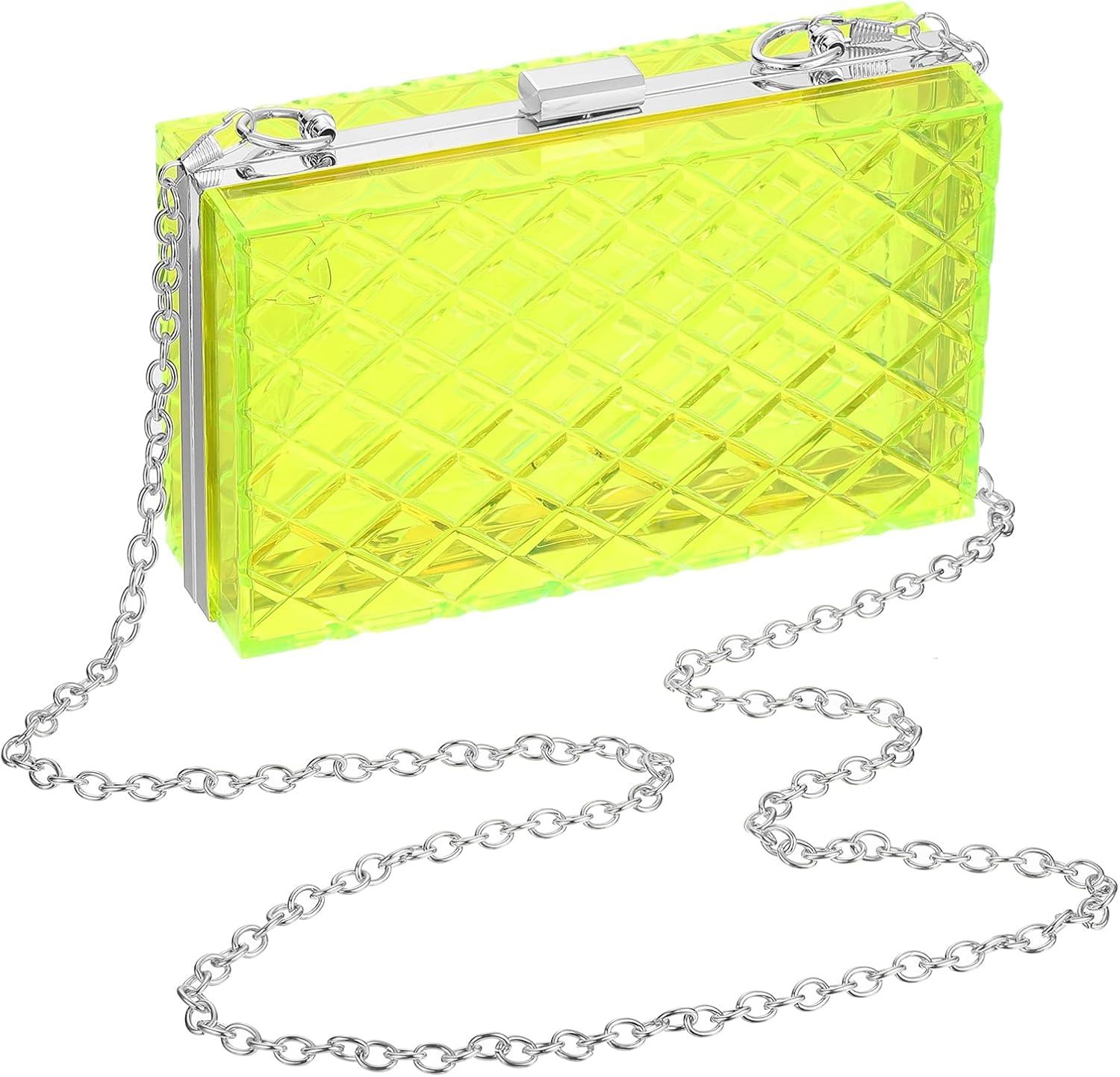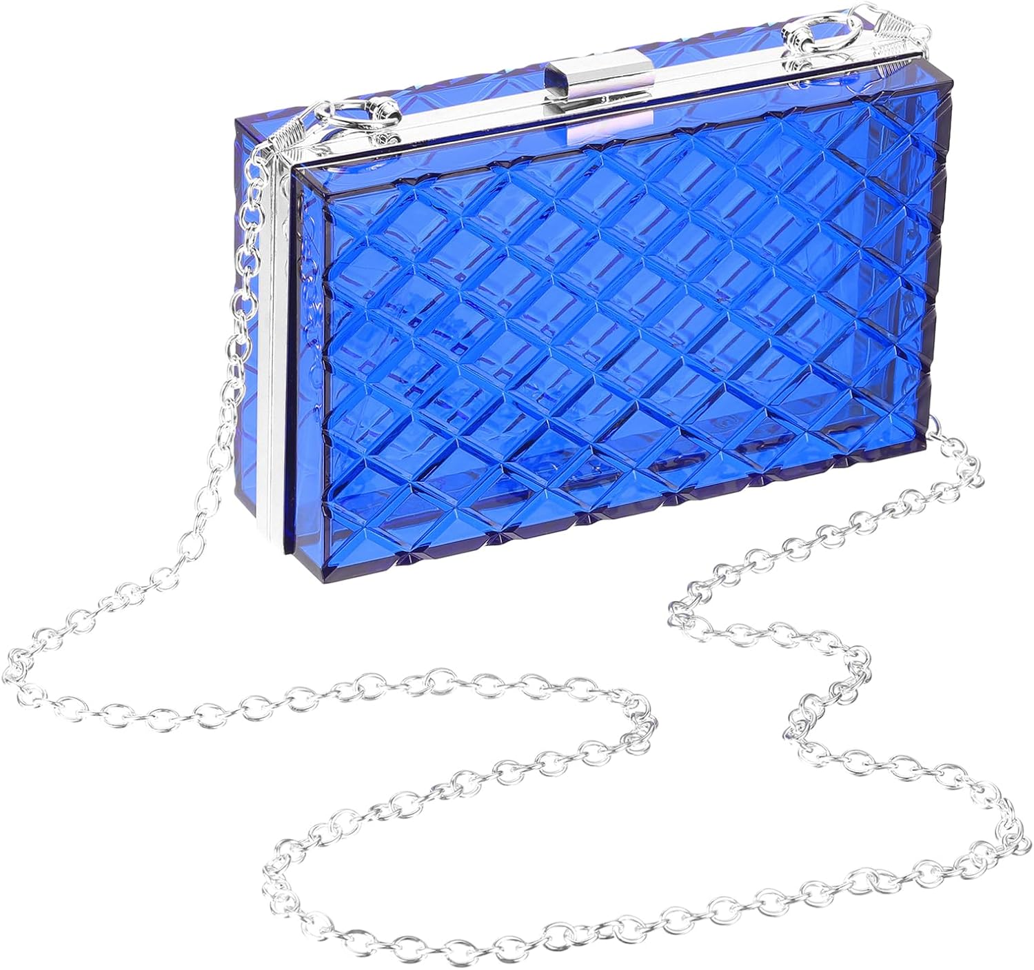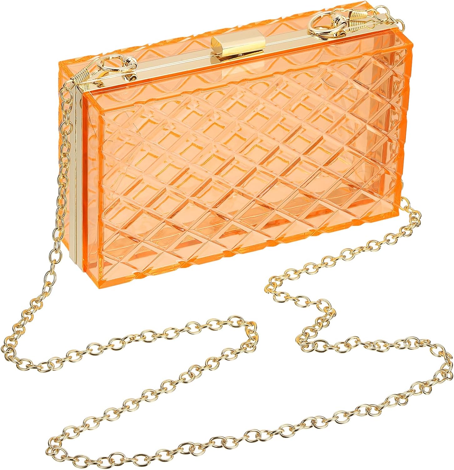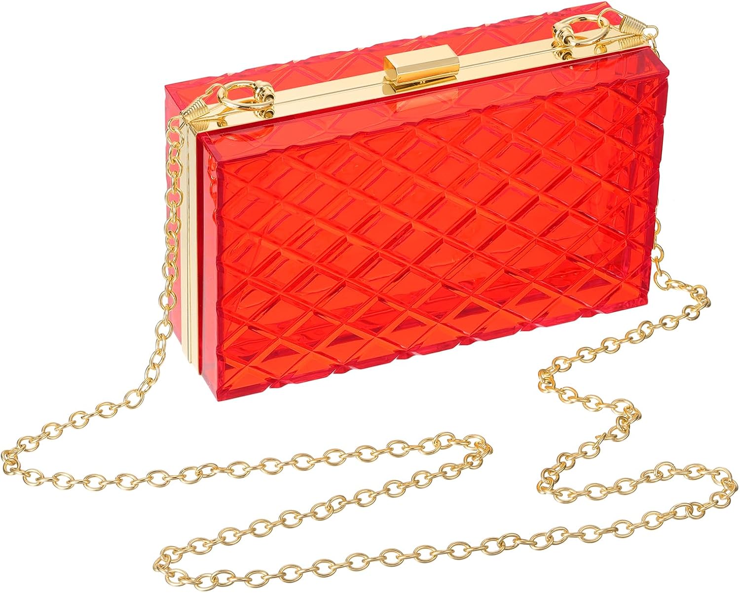 Description:[Material] Made of acrylic, the clear purse has a crystal clear appearance, great texture, and beauty. It has strong impact resistance, is not easy to break, is sturdy and durable, and can be used for a long time.[Features] This acrylic clear purse is easy to match and suitable for any clothing style. You can add stickers to personalize this cute transparent bag for various entertainment activities. It adopts a lock buckle to prevent items from falling.[Easy to Use] This acrylic bag can be carried in multiple ways, it can be used as a handbag, it comes with a detachable chain strap, you can buckle it to the bag and use it as a crossbody bag, shoulder bag, or backpack.[Wide Application] These clear purses can easily hold a credit card, wallet, mirror, red, mobile phone, or some other small items, and can be used for any occasion, such as weddings, cocktail parties, beaches, or picnics.