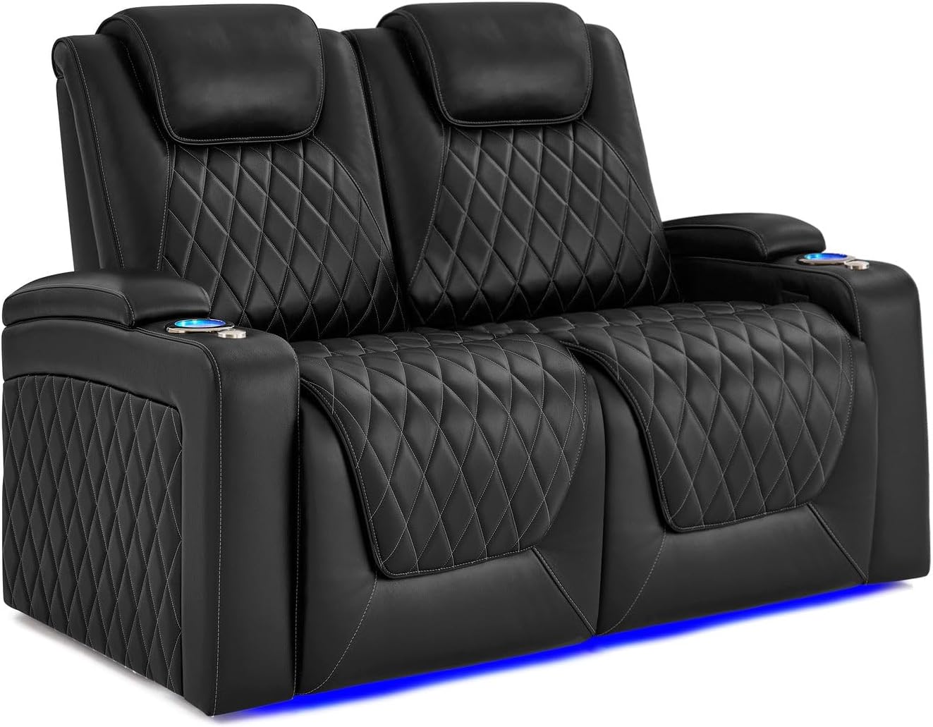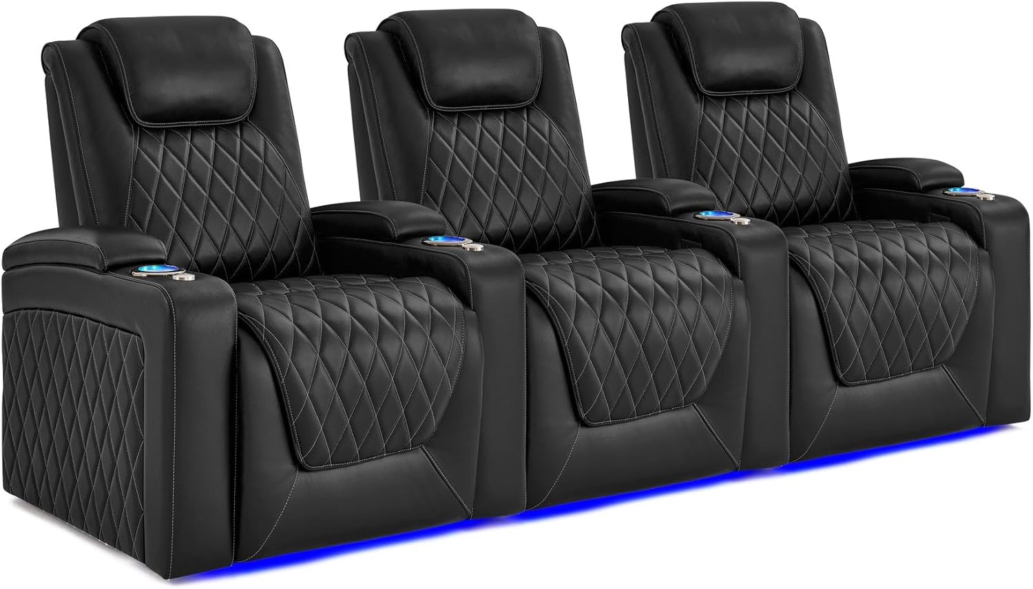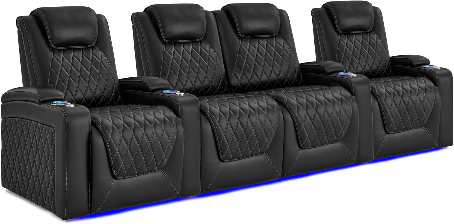 Elevate your home theater experience to new heights with the Valencia Oslo Float Zero Gravity Heat & Massage Theater Seating. Upholstered in premium Italian Nappa 11,000 top-grain leather, this seating offers a perfect balance of luxurious softness and lasting durability. Beneath the surface, the exclusive Comfort-Matrix Technology—featuring memory foam, cool gel, springs, and support foam—keeps you cool and ergonomically supported throughout every movie, show, or game. The centerpiece of this seating is the exclusive Float Zero-Gravity recline technology, which gently elevates you into a weightless state that eases spinal pressure and enhances circulation for a uniquely luxurious experience. Full power adjustments for lumbar, headrest, and recline put personalized ergonomic support at your fingertips, while elegant diamond-quilted stitching adds a regal aesthetic with enhanced softness. Indulge further with the upgraded heated seating cushion and enhanced therapeutic massage technology that targets key lower back zones for focused relief and deeper relaxation. Convenience features include USB-A and 18W USB-C charging ports, a sleek black chrome cup holder and controller, and RGB LED lighting in 7 vibrant colors that line the cup holder rims—making it easy to locate your drink even in complete darkness. Armrest hidden storage with air pistons provides smooth, seamless access to trays, remotes, and tablets. Finished with refined craftsmanship throughout, the Oslo Float delivers the ultimate in comfort, style, and innovation for your home theater.