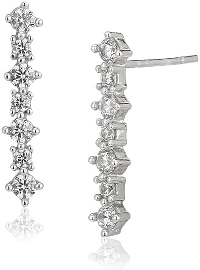Sterling Silver Jewelry - Rhodium Plated with 925 Stamp - Drop Stud Earring - Cubic Zirconia Stones Jewelry for Women - Elegant Handcrafted Earring for Women