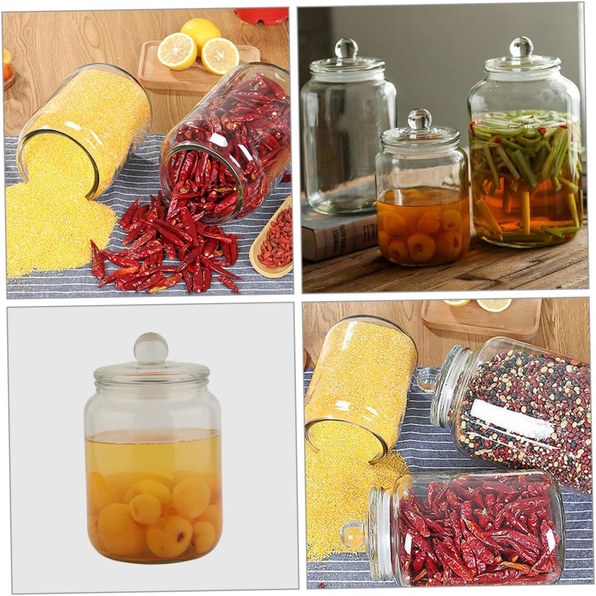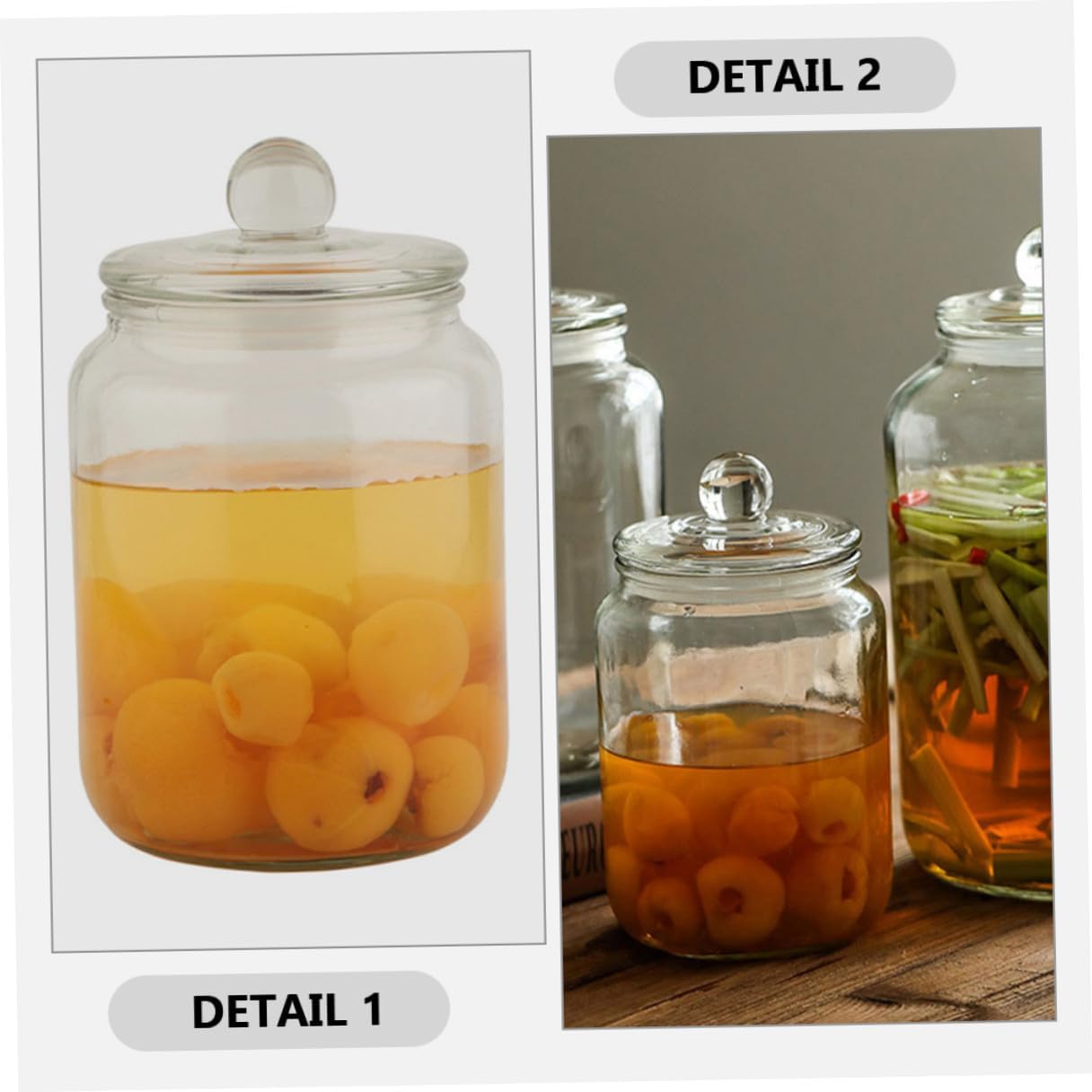 Package List 2 x glass canister Features -Color:White -Capacity: 2L Sealed Tea Canister -Size:22.50X13.50X11.50cm/8.84X5.31X4.52in -Material:Glass -Product Info:Moisture-proof storage tank - Sealing jar is perfect for storing dry food, such as hold tea, grains, dry food, cereal, rice, beans, nuts, etc glass coffee storage. - The lid can keep moisture, from the food inside, multifunctional and practical Kitchen Canisters. - Food storage jar has both portable size design and an enough capacity for small items storage. - Made of glass, strong and safe. Let the tea be stored safely and fresh in the container Glass Storage Jars. - As and convenient packaging tin with lid, it allows food to stay fresh and dry longer food storage jar.Goods Descriptionairtight jar It is also great for storing non-food items such as craft supplies, office supplies, and small household items.glass container This canister is made of polished glass material, safe and for daily use.kitchen jars This glass canister is perfect for storing a variety of foods such as rice, pasta, cereal, snacks, and more