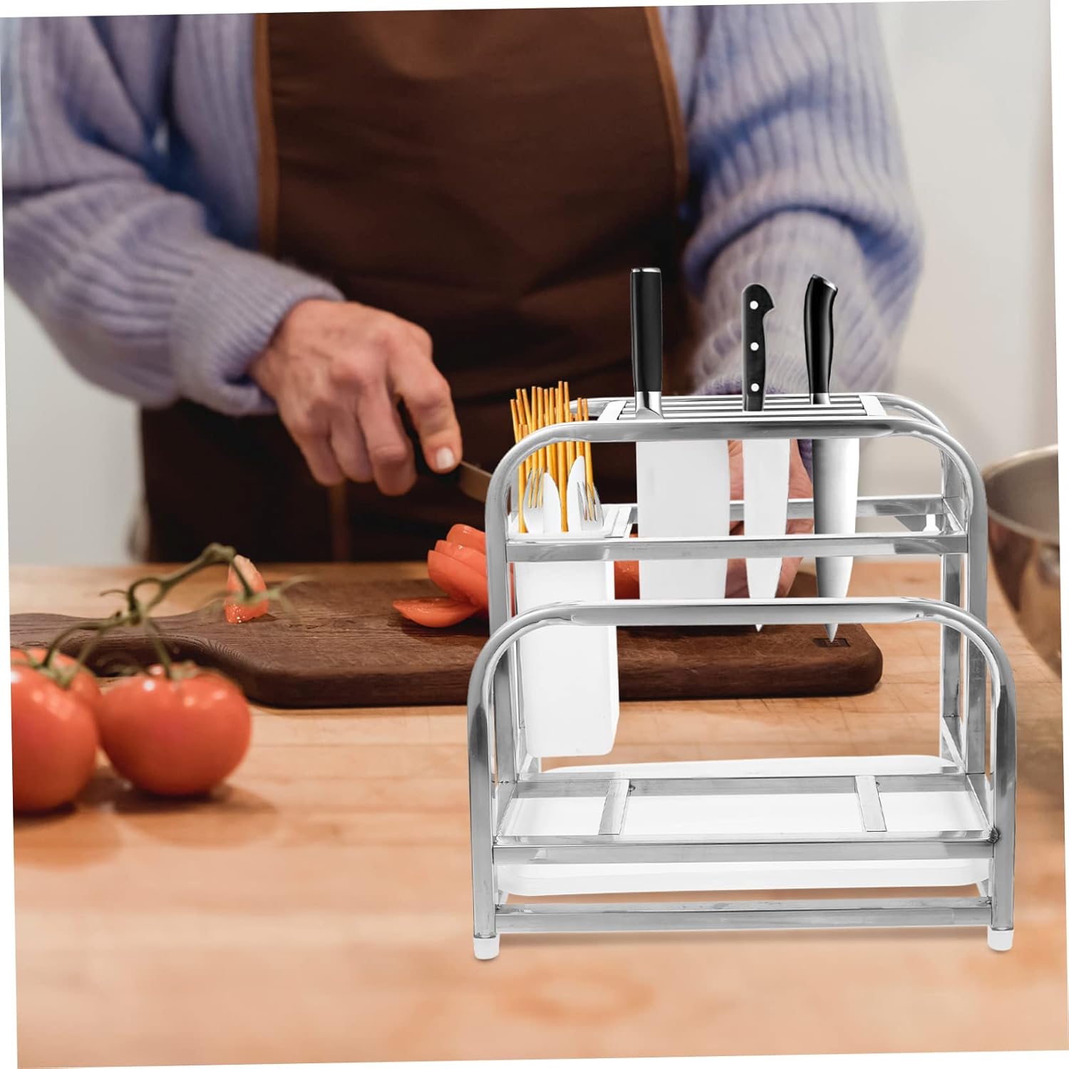 Package Include 1 bracket Features -Color:Silver kitchen storage rack -Product Info:Knife holder -Material:Stainless Steel chopsticks storage bracket -Size:24.00X16.00X24.00cm/9.43X6.29X9.43in multi-function kitchen holder -Selected and sturdy , stylish and multi-purpose, and odorless, makes it more tough and , yet not too heavy serving chopsticks holder. -The storage holder can help your kitchen be organized and clean, no more messy, a good helper for your home holder for kitchen utensils. -Reasonable design for convenient use and space, looks modern and elegant, can match with your kitchen well chopstick container. -A good kitchen storage holder for your household kitchen, very practical, can hold cutters, different sizes of tools are placed in different positions kitchen multifunctional storage rack. -Rounded edges and corners, smooth to the touch without hurting your hands, and it is and anti-rust table chopstick holder.Goods Informationmultifunctional kitchen storage rack Suitable for home kitchen use, you can organize your some kitchen items well, such as pot cover, chopping board and more.chopsticks stand holder This is a multi-function Kitchen Cutter storage Rack.kitchen utensils holder It's a wonderful storage rack of your kitchen.chopstick container Made of good and hard material, delicate and practical, with fine workmanship, which makes it more easy for use