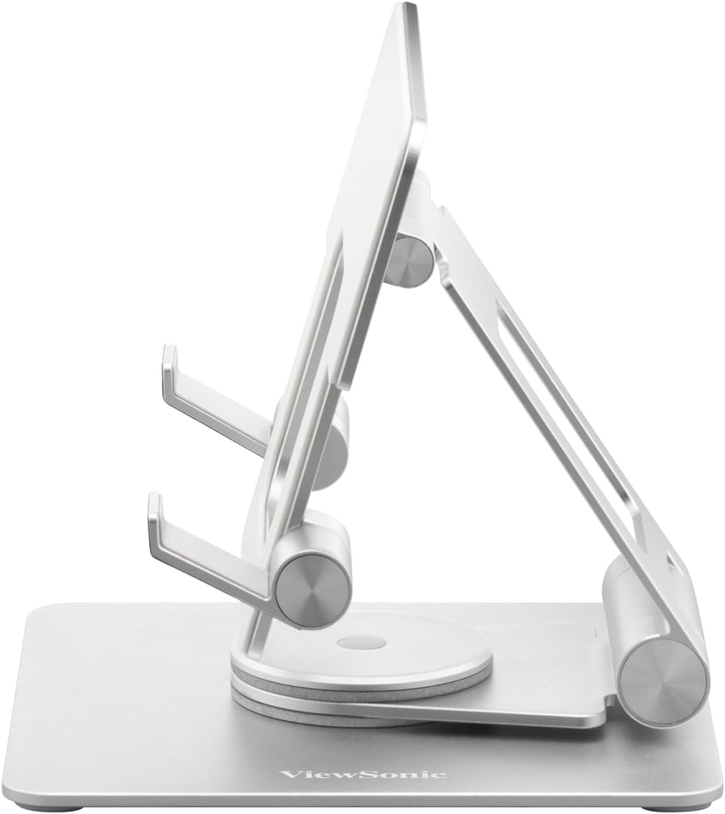 Enhance your portable monitor viewing experience with LCD-STND-001, a lightweight and compact portable monitor stand designed for ultimate flexibility and convenience. This stand features 360° swivel, tilt, and height adjustment, allowing you to find the perfect viewing angle for your needs. Crafted with a sturdy silver aluminum frame and equipped with rubber griping, it ensures stability and holds your portable monitor securely in place. Weighing just 1 lbs, it is easy to carry and it even comes with a protective case for hassle-free transport. Compatible with all ViewSonic portable monitors, this stand is the ideal solution for on-the-go users who need a reliable and versatile monitor setup.