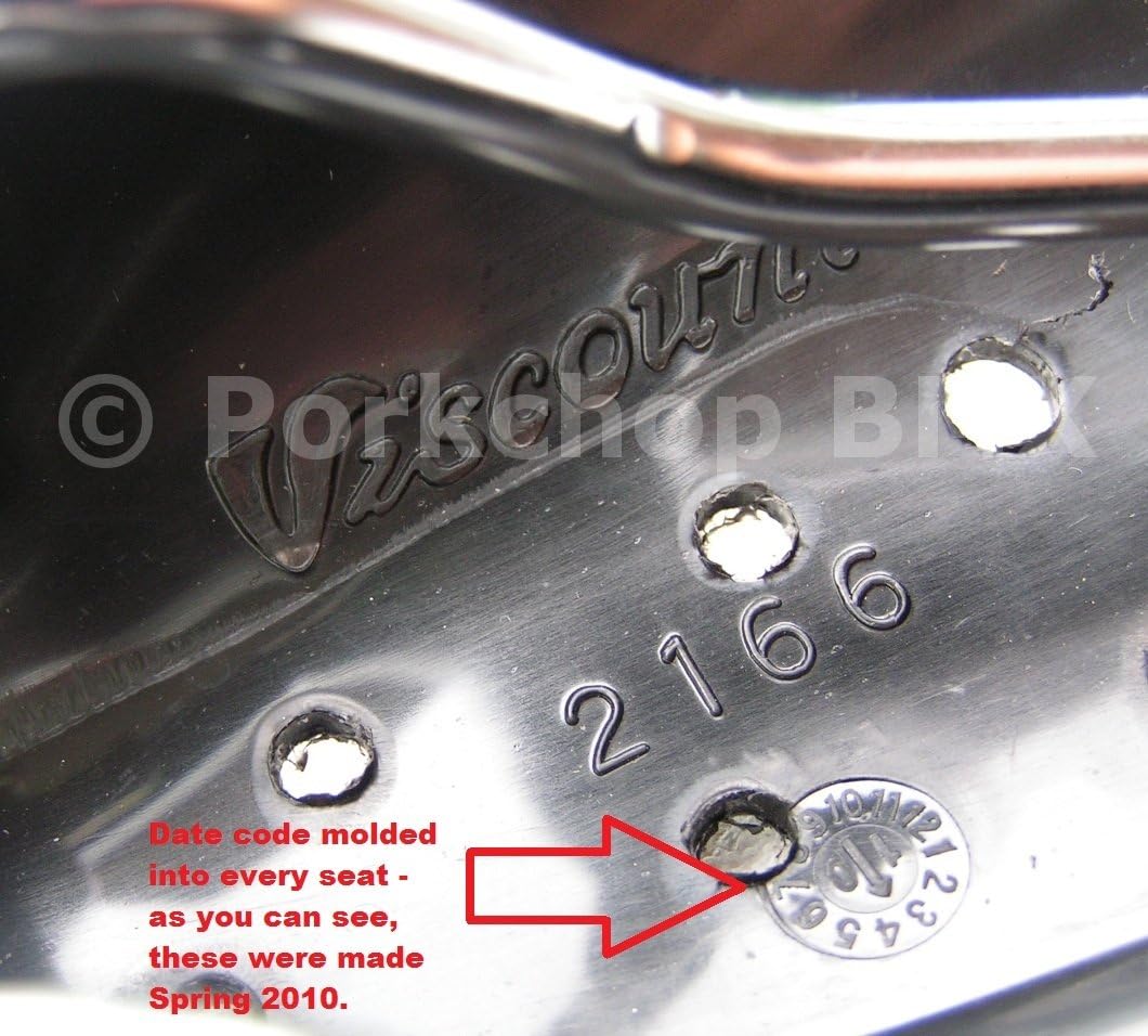 Viscount Dominator BMX seat Buy a REAL Dominator for less than a fake one. These are made from the original molds by Viscount with all the historically correct details. No worries about anyone passing these off as original seats manufacturered in the 1980's because I have had Viscount mold the date code into the underside of each seat. Viscount Model # 2166 Color: BLACK Length: 271mm (about 10 5/8") Width: 149mm (about 5 7/8") Rails are CHROME Seat guts are gold tone (I believe this called yellow zinc) Yellow Viscount sticker on back Gold leaf lettering for "Dominator" on the nose. Date code molded under the "2166" - these were manufactured from the original molds Spring 2010.