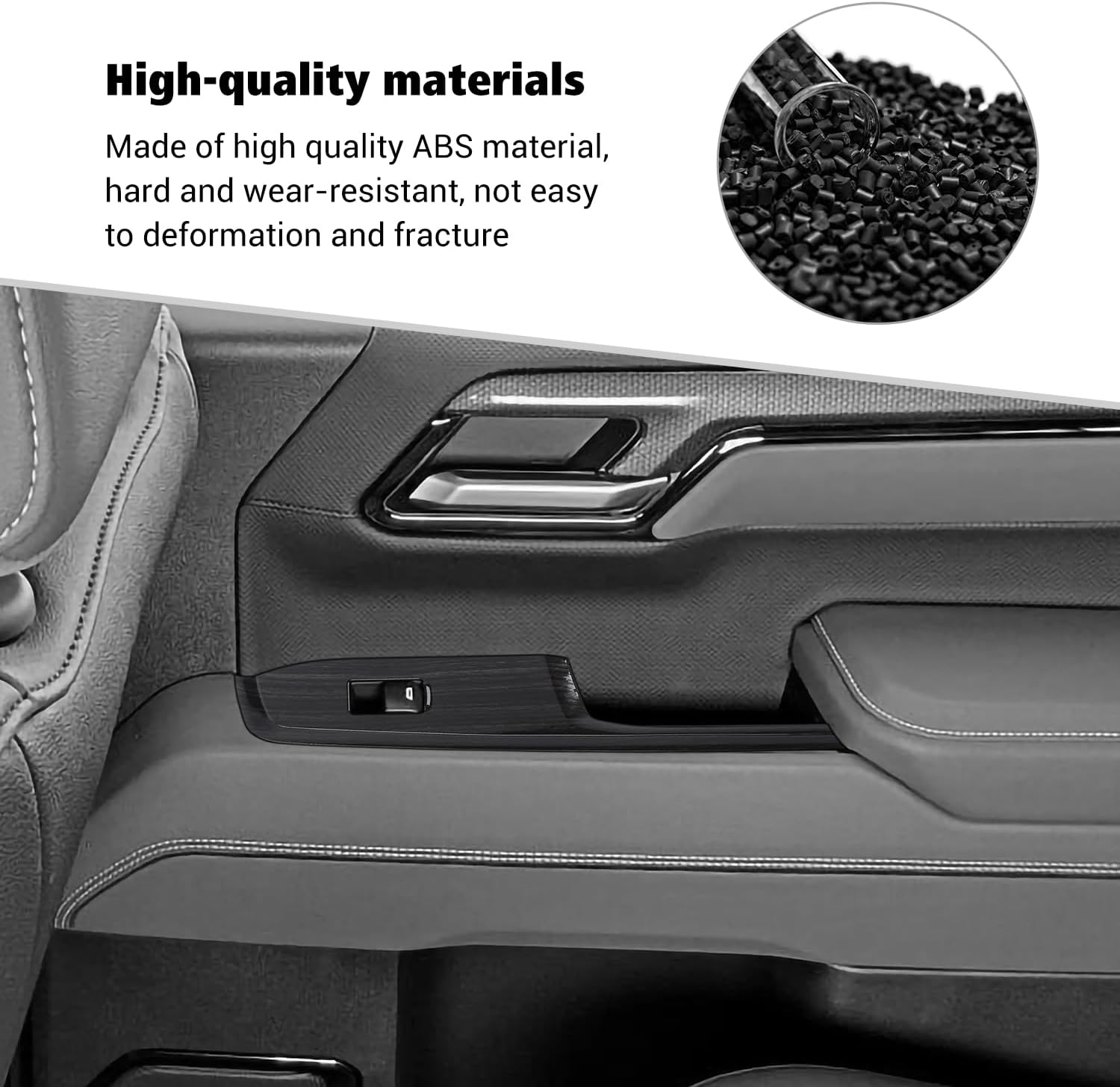 Model: for Chevrolet Silverado 2022+. Feature: -Completely changed the Original look, it slip over the factory plastic and fits perfect. Provides a high class and fashion decor style for your Car.change the ordinary design and add unique color. -Made of High Quality ABS -Can be installed directly, no drilling or cutting required, just press the trim on the Original parts. Don't need any other tool, no damage to your Car After sales service -If you have any suggestions or questions for our products, please contact us as soon as possible. Package Include: 4Pcs Wood Car Door Window Control Panel Cover . Attention: ✔ Please compare your original Car with our images before placing the order. ✔ For Chevy Silverado 2022+.