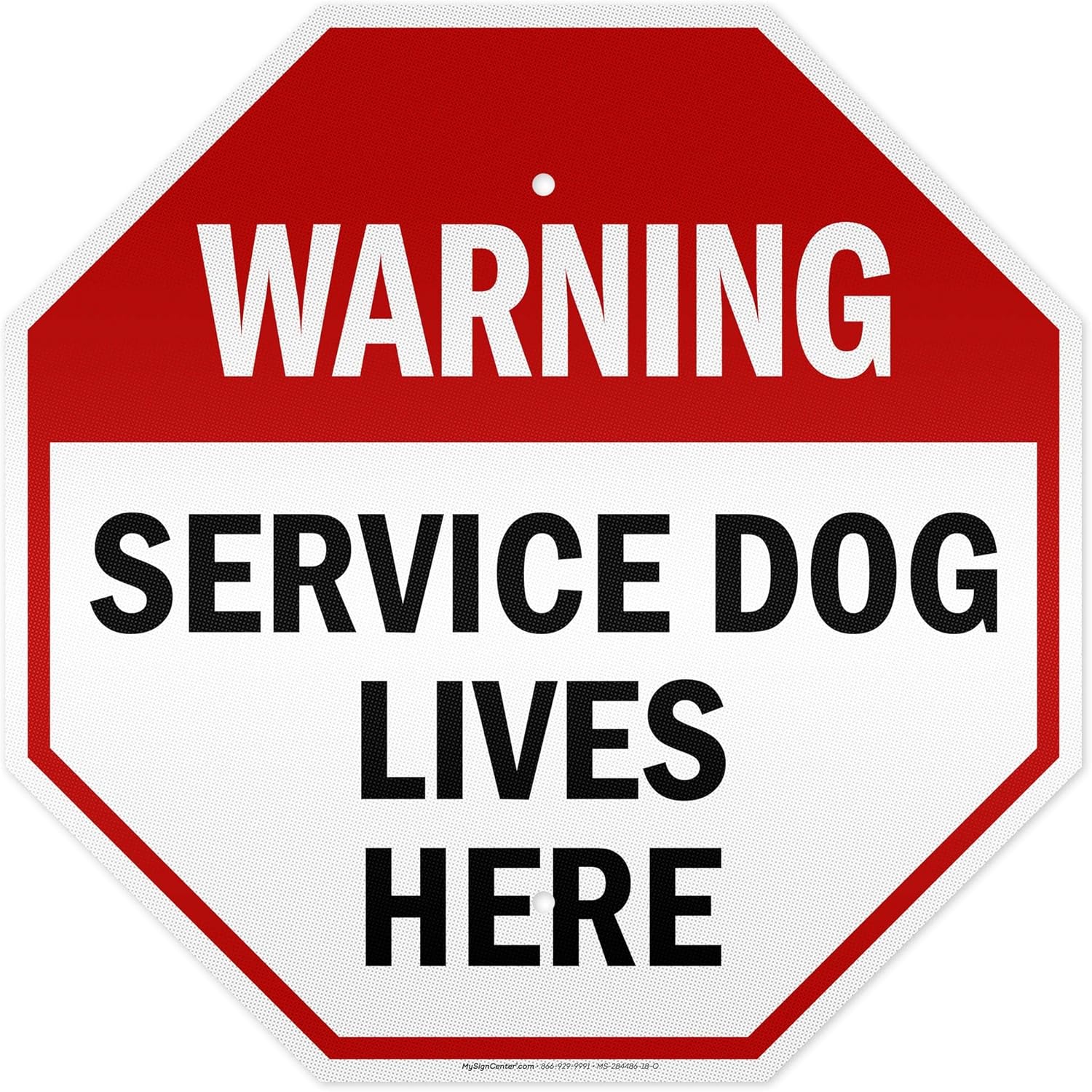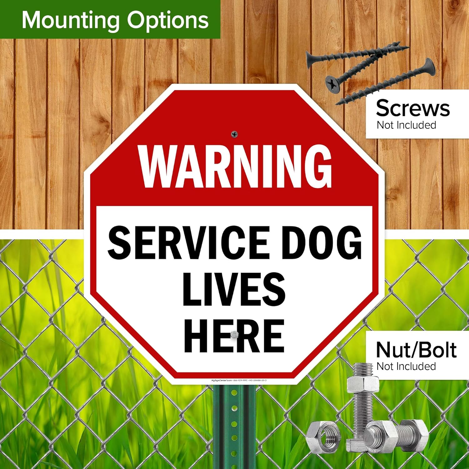 Warning Service Dog Lives Here Sign, 18x18 Inches, Rust Free .063 Aluminum, Fade Resistant, Made in USA by My Sign Center