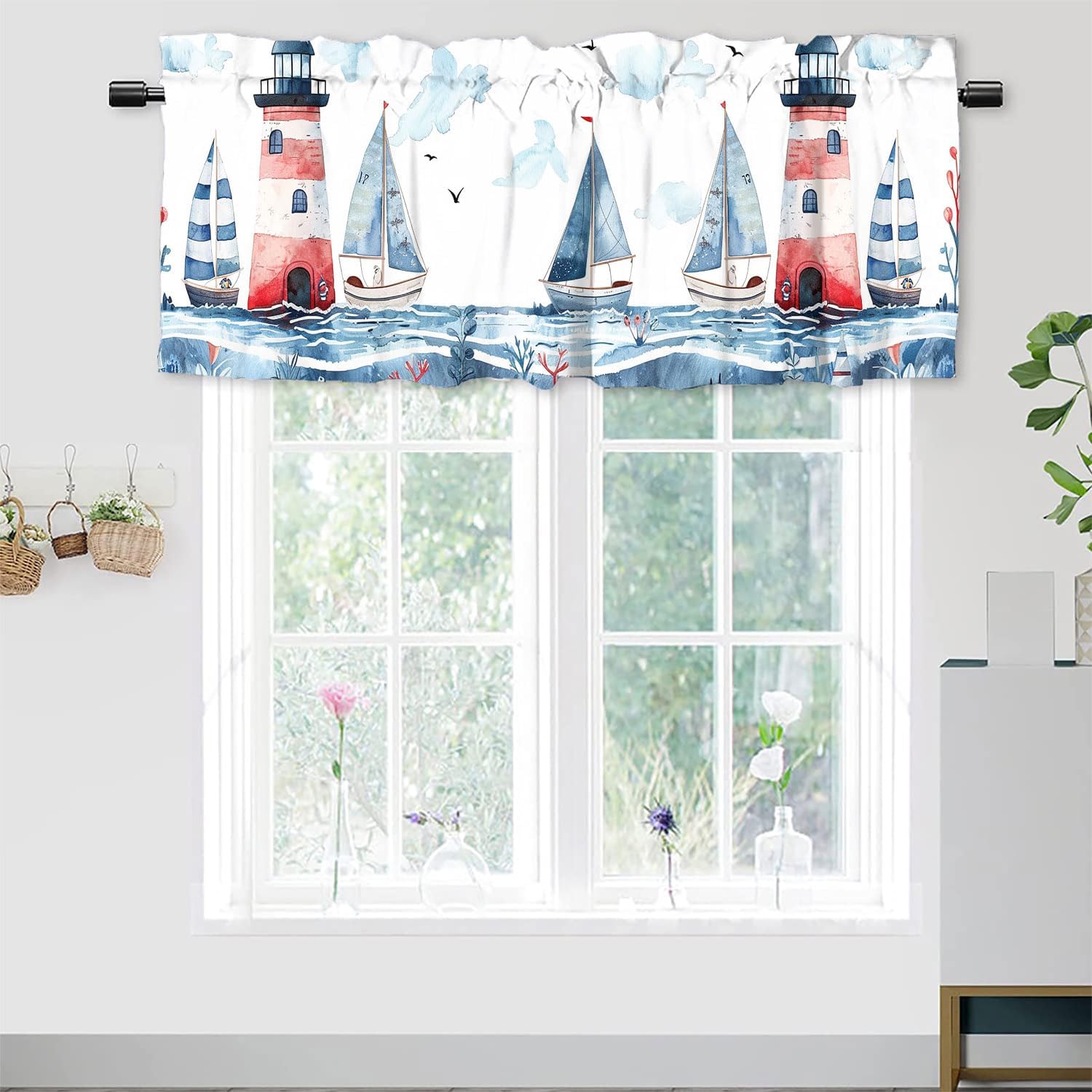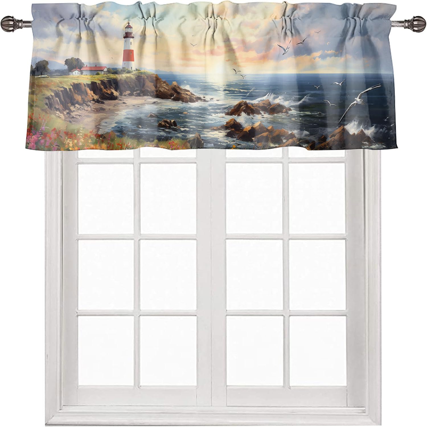 Beautiful Valance Brightens your lifeHigh Quality FabricLightweight, soft texture and smooth draightping effect. Machine washable.Rod Pocket DesignRod Pocket slides easily onto your curtain rod for quick installation.Application ScenesValances for windows suitable for kitchen, bathroom, cafe, basement, bedroom, living room, also can be hung on the closet, shelf or any other places people want to hide or decorate.Privacy ProtectionThese kitchen valances for windows allows natural light to pass through during the day and protect your privacy to the fullest extent.