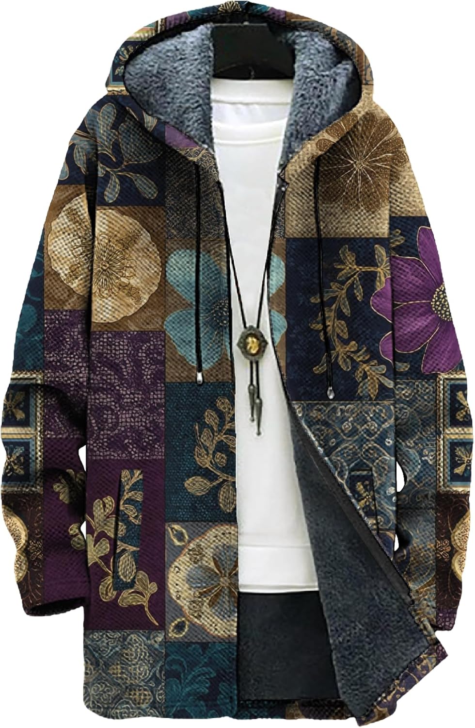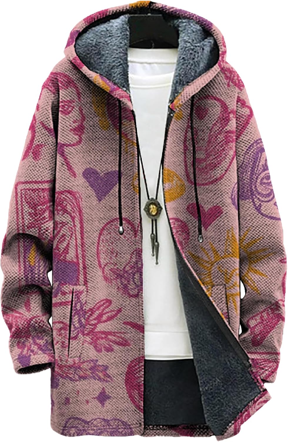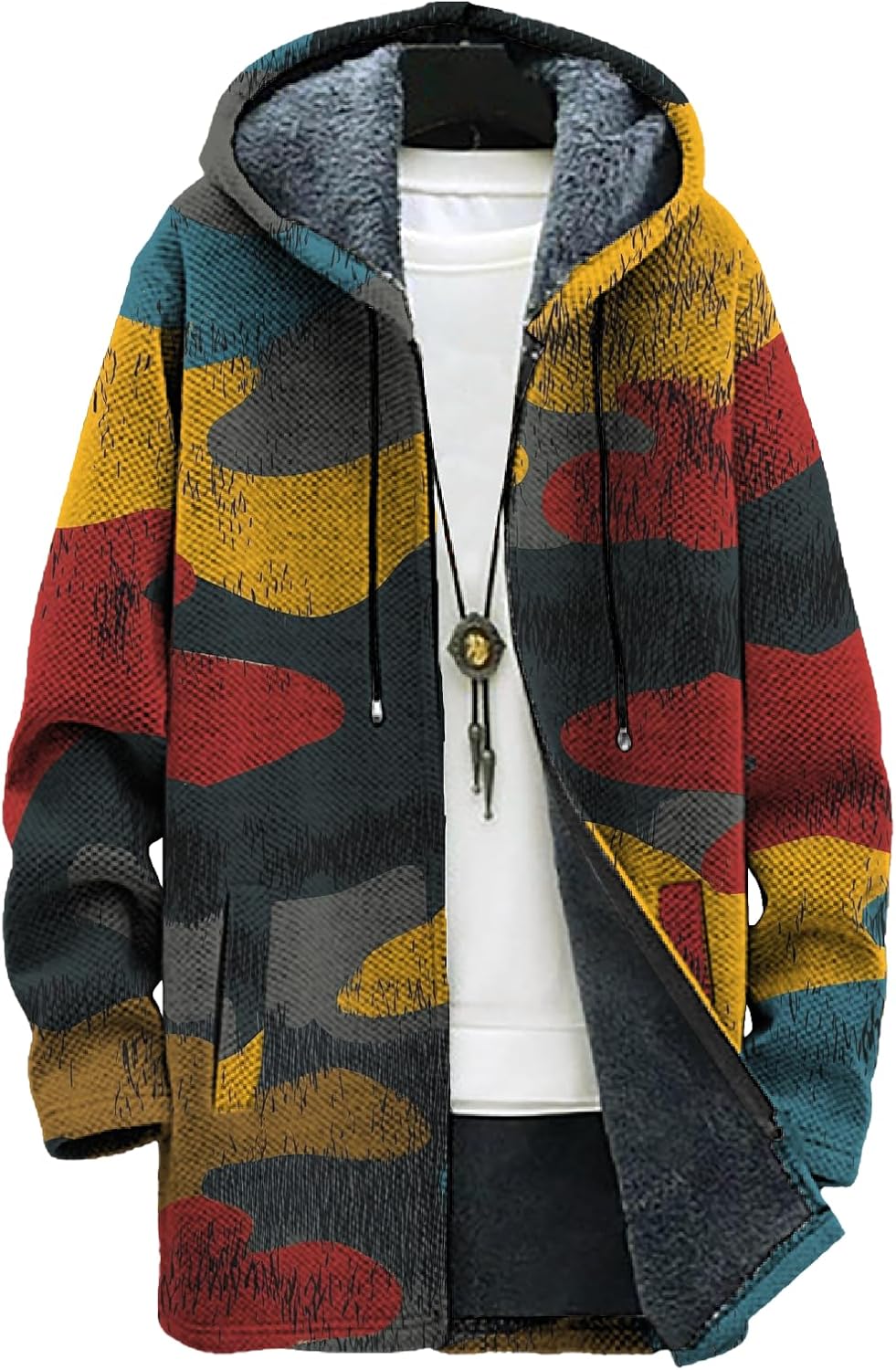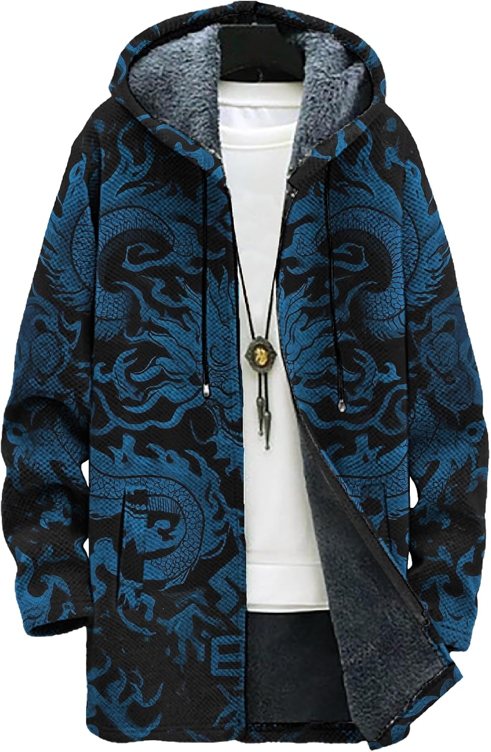 domirica Western Big and Tall Mens Full-Zip Fleece Lined Jacket Bold Artistic Print Comfy Travel Daily Vacation Coat