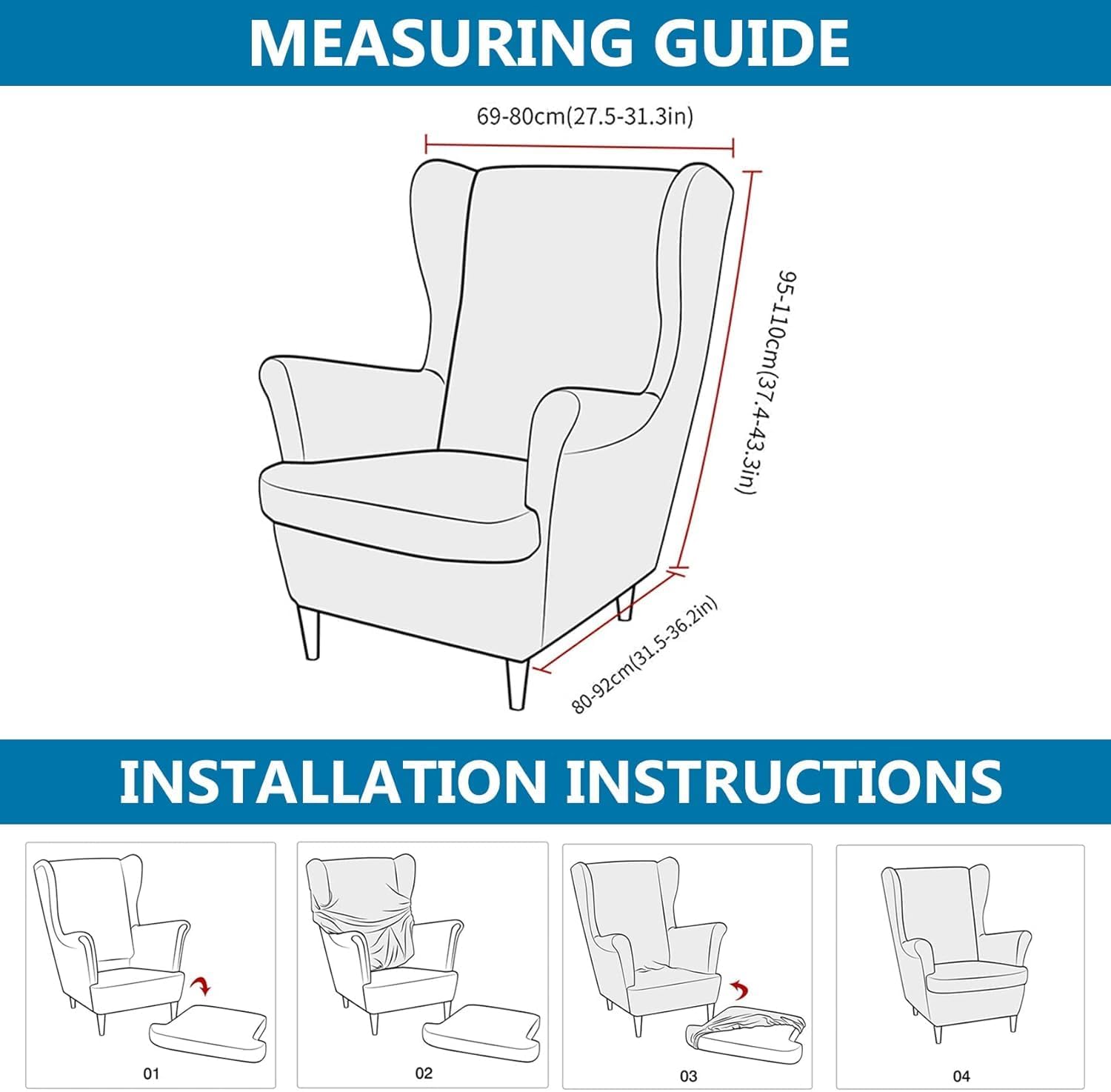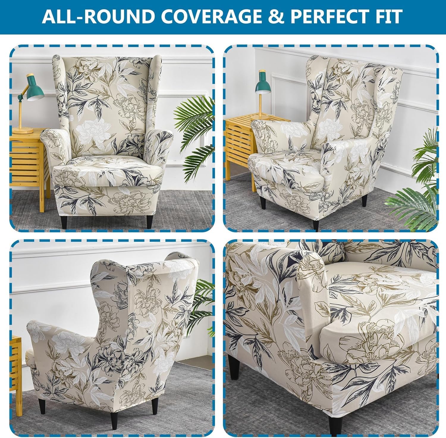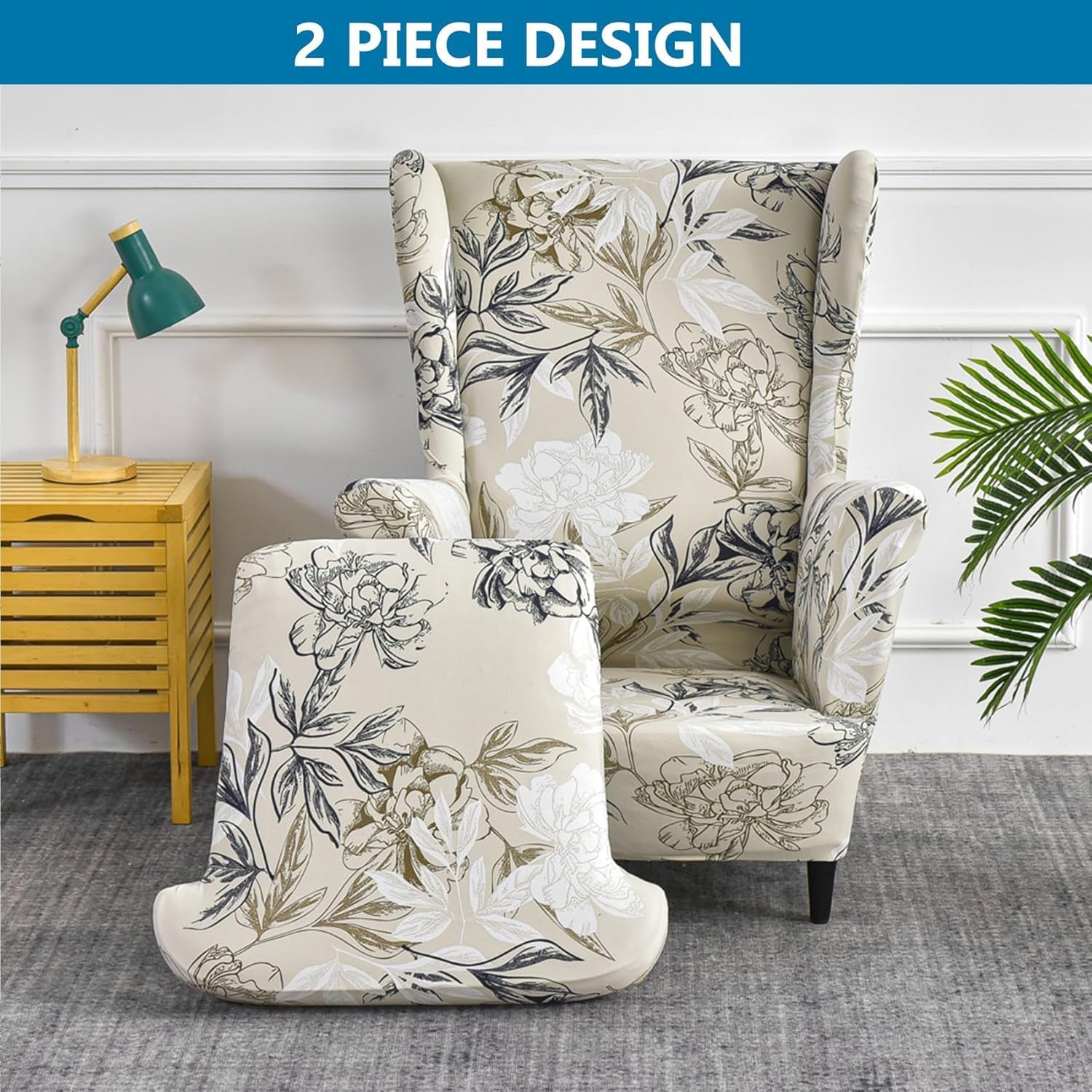 Moiubik Wingback Chair Slipcovers 2 Piece Soft Stretch Spandex Wing Chair Washalbe Armchair Sofa Slipovers Furniture Protector Chair Covers for Living Room and Bedroom