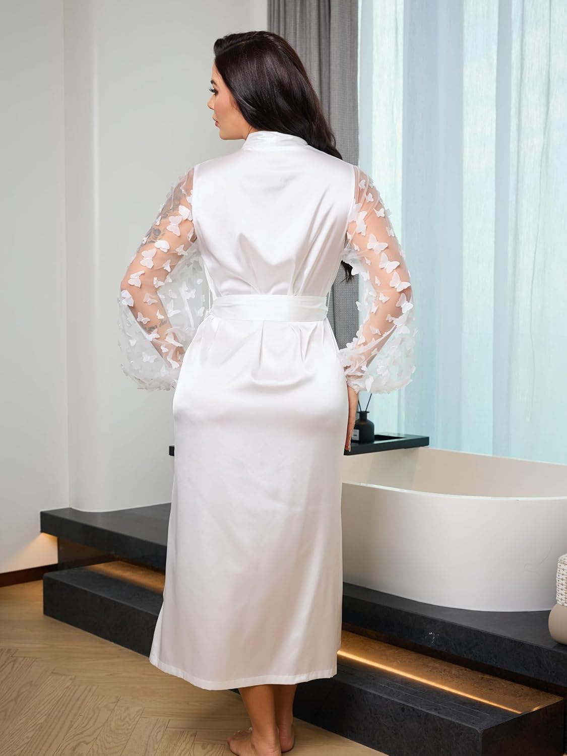 | Model Name | Elegant White Silk Bridal Robe With 3d Butterfly |