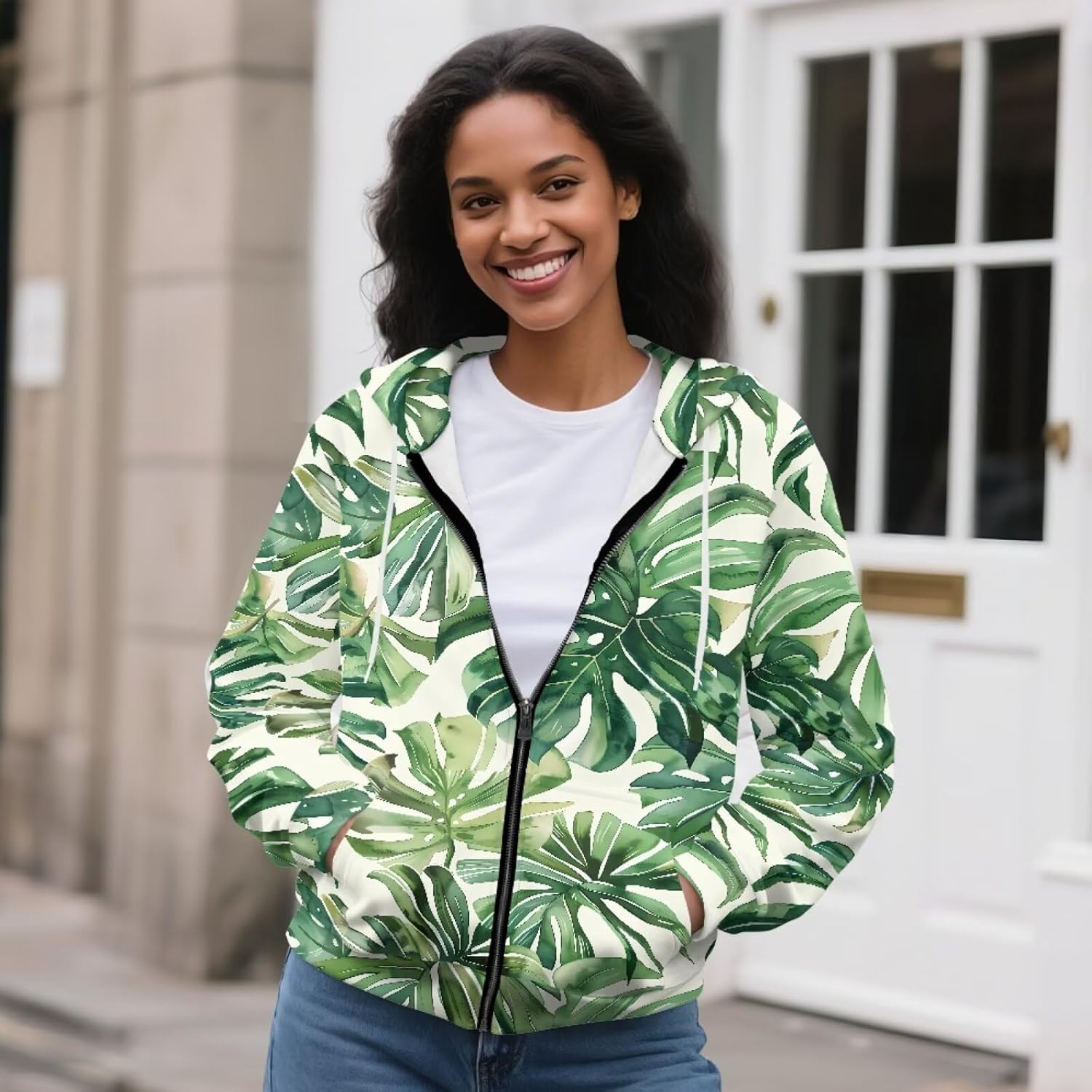Personalized Woman Long Sleeve Sweatshirt Pullover Zip Up Hoodies Casual Jacket with Pockets 【Features】 long sleeve, full zipper, ribbed sleeve cuffs, adjustable drawstring hood, big pocket, fashionable 【Occasions】 Vivid and interesting patterns, perfect for home casual and sports, such as halloween, christmas, holiday party, training, running, hiking, picnic, yoga, gym, outdoor activities, music festivals, holiday, concerts, parties, casual daily wear, street wear, cosplay and more. 【Perfect Gifts】 The long sleeve zipper tops hoodies are the nice gift for family or friends. Moreover, it is also a idea gift for Christmas, Birthday, Halloween, Thanksgiving. 【Size Chart (Unit: Inch)】 XS : length 65cm (25.5inch) bust 100cm(39.3inch) S : length 67cm (26.3inch) bust 106cm(41.7inch) M : length 69cm (27.1inch) bust 112cm(44 inch) L : length 71cm (27.9inch) bust 118cm(46.4inch) XL : length 73cm (28.7inch) bust 121cm(48.8inch) 2XL: length 75cm (29.5inch) bust 130cm(51.5inch) 3XL: length 77cm (30.3inch) bust 136cm(53.5inch) 4XL: length 79cm (31.1inch) bust 142cm(55.9inch) 5XL: length 79cm (31.1inch) bust 148cm(58.2inch) Please refer to the size chart we provide to choose your reasonable size before ordering. Due to the light and screen setting difference,the item's color may be slightly different from the pictures.