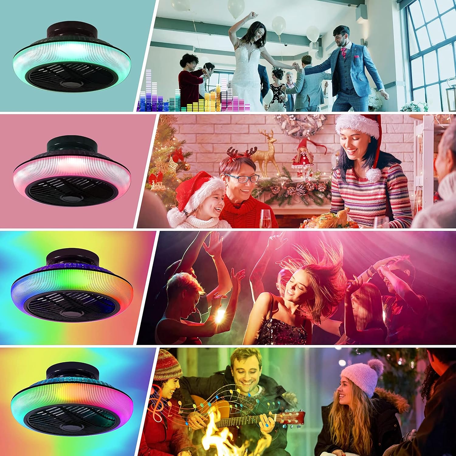 YUEGOO Ceiling Fans with Lamps,Ceiling Light Light with Remote Control,RGB Ceiling Fans with Lights App,Dimmable Led Enclosed Ceiling Fans,Winter and Summer Functions/C