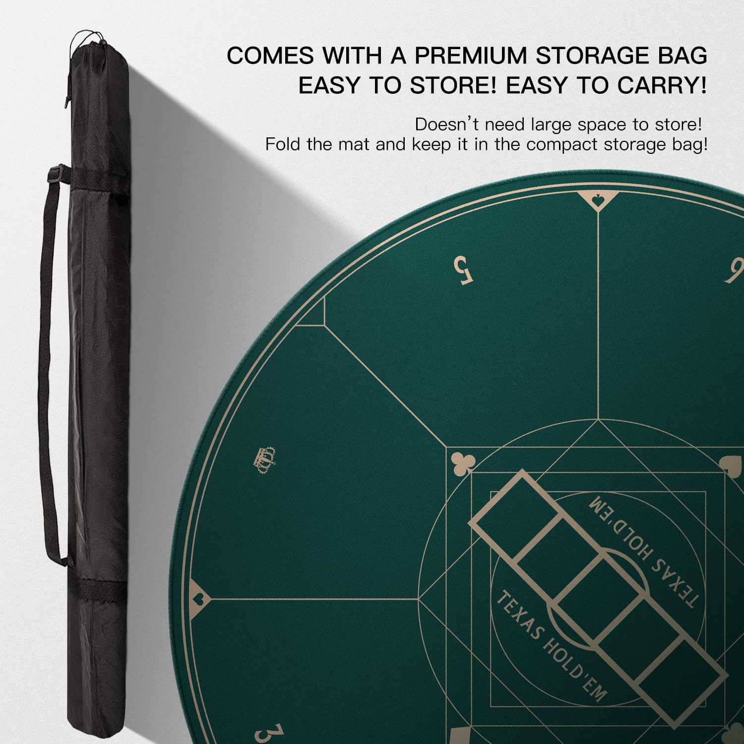 Value Pack -70 x 35 Inch Poker Mat Green + 47 Inch Round Poker Table Mat