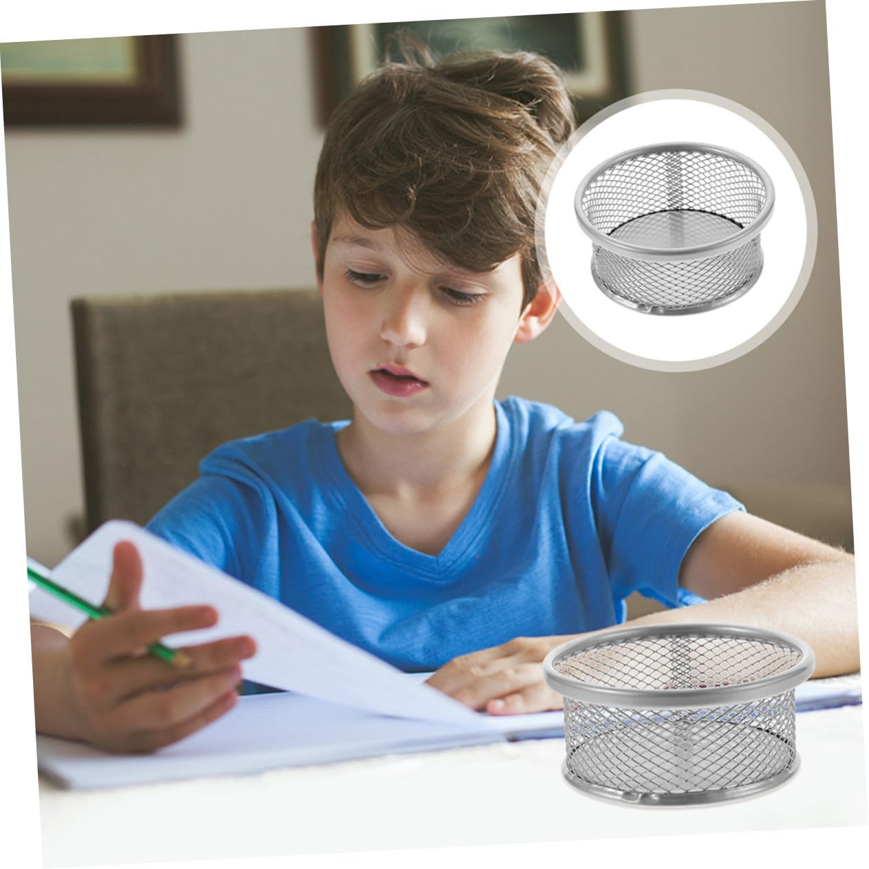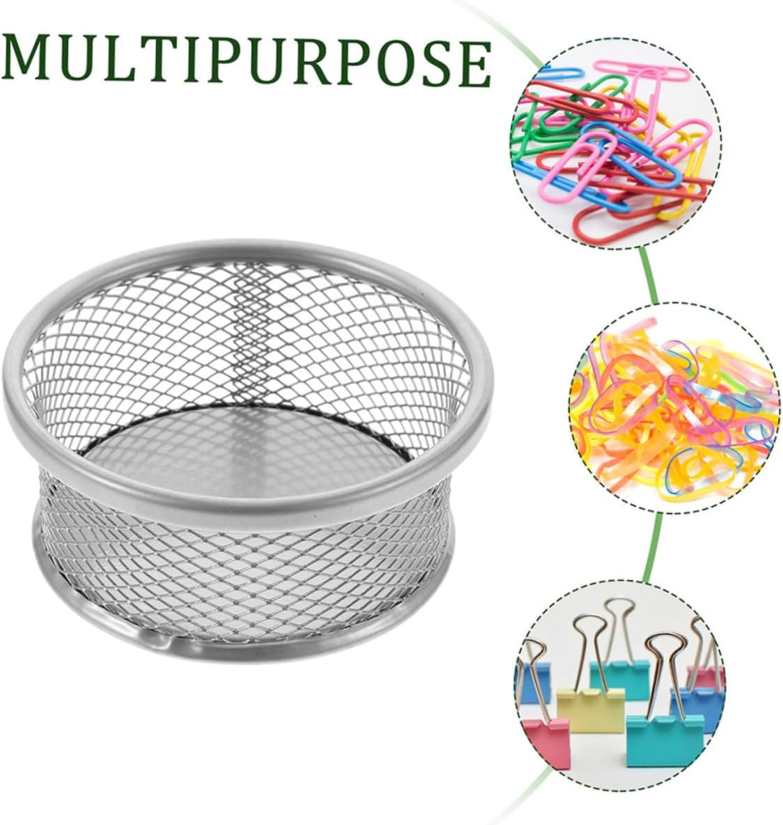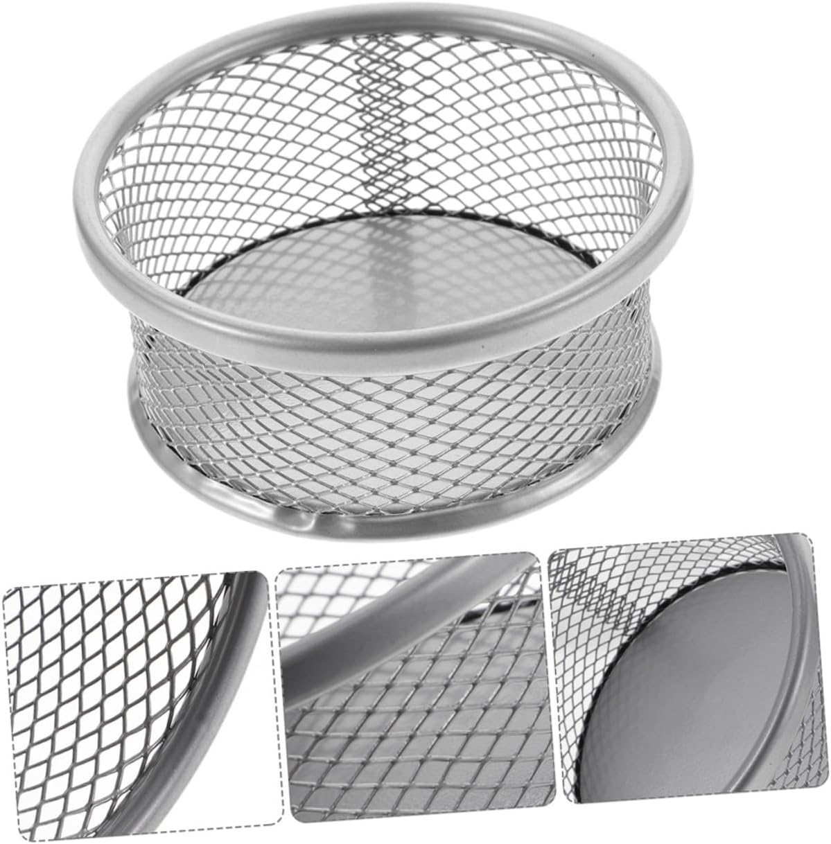 Package Include 8 x Paperclip Holders Characteristics -Size:9.00X9.00X4.00cm/3.54X3.54X1.57in paperclip holder -Material:Metal mesh dispenser for paper clip -Product Info:Office pen holder -Color:Silver office paper holder -Metal material can allow you to use it easily and make your study and work more convenient paper clip organizer. -These paper clip holders are suitable for storing paper clips, thumbtacks, screws, nails, safety and more multifunctional paper clip storage. - and reliable, wear-resistant and safe, and can be used for a long time. These Desktop Mesh Holders can be stacked together to save space binder clip holder. -Keep your desk neat and orderly, simple in design, convenient to store small objects. You can give it as a to friends and family, they will need it, especially desktop paper holder. -This desktop paper clip storage box has a large capacity and convenient design. The wide mouth makes it easier to grab items when you need it, and make accessory sorting easier mesh holder.Goods Descriptionpaper clip organizer Made of wear-resistant materials, which is very practical and sturdy.desktop paper holder This stackable paperclip holder is specially designed to store orderly paper clips and various small items.office desk clip Very convenient, easy to use, and can store small items on the desktop for you